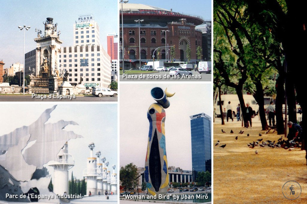 Monumental Fountain ตรงกลาง Plaça d’Espanya / Plaza de toros de las Arenas ที่เคยเป็นสนามสู้กระทิง ปัจจุบันปรับปรุงใหม่เปิดเป็น Shopping Center / “Dragon of St. George” สไลเดอร์มังกรกับแนวประภาคารใน Parc de l’Espanya Industrial / “Woman and Bird” by Joan Miró ในสวน Parc de Joan Miró