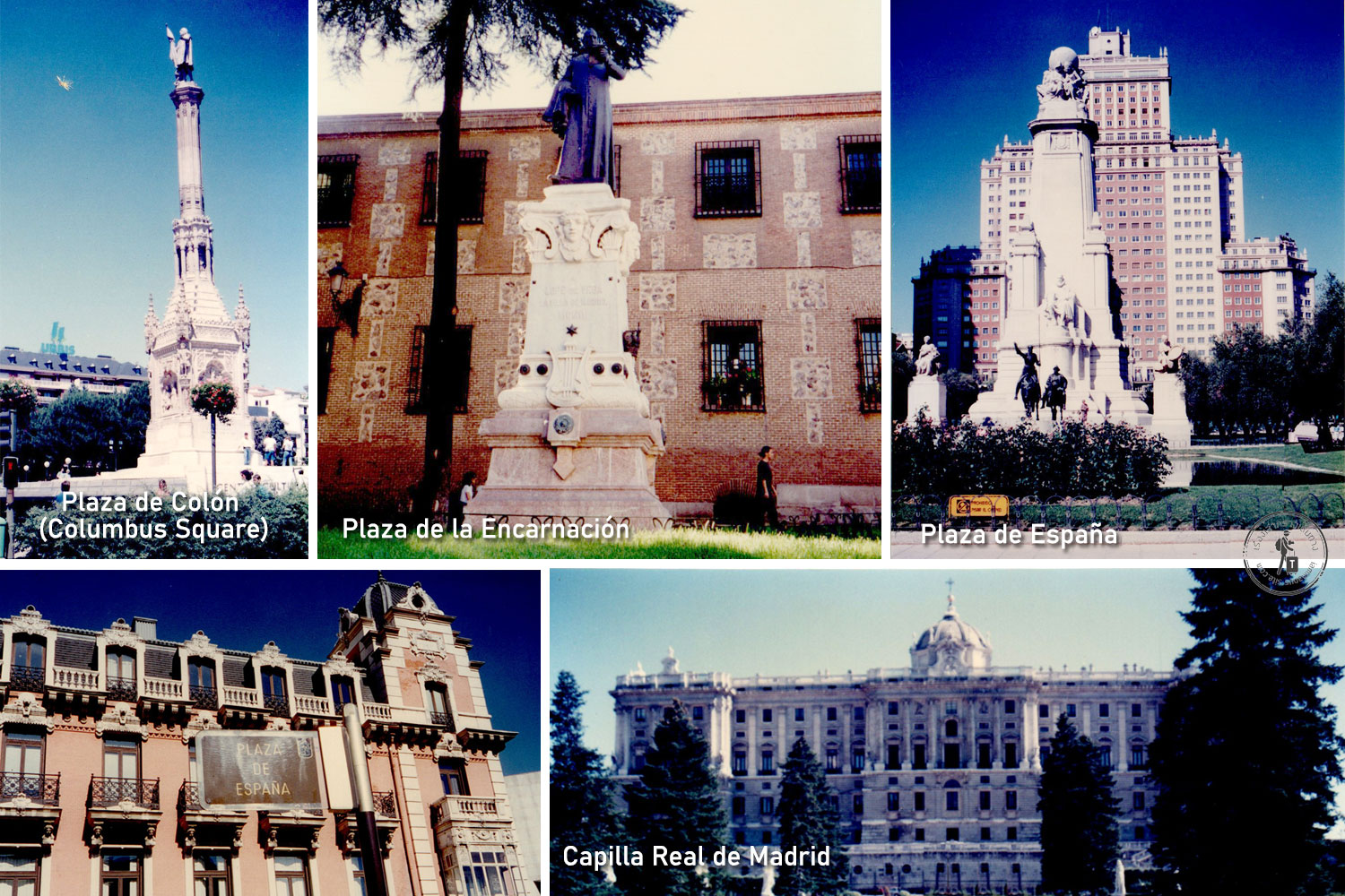 วันแรกของพวกเราตั้งต้นกันที่ Plaza de Colón (Columbus Square) หรือจัตุรัสโคลัมบัส เดิมเรียกว่า Plaza de Santiago ( St. James Square ) เปลี่ยนชื่อเป็น Plaza de Colón ในปีพ.ศ. 2436 เพื่อเป็นเกียรติแก่คริสโตเฟอร์ โคลัมบัส นักเดินเรือชาวสเปนผู้โด่งดัง มีรูปปั้นของโคลัมบัสอยู่บนยอดเสาสูง เห็นเด่นชัด เดินลัดเลาะไปเรื่อยๆจนถึง Plaza de España เป็นจัตุรัสกว้างๆ มีจุดเด่นคืออนุสาวรีย์ของ Miguel de Cervantes นักเขียนชื่อดังชาวสเปน ผู้เขียนเรื่อง ดอน กิโฆเต้ แห่งลามันช่า (El ingenioso hidalgo don Quixote de la Mancha) เดินต่อไปที่ Palacio del Senado (Senate building) เป็นอาคารรัฐสภา อาคารเก่าแก่เกือบ 200 ปี เดิมเคยเป็นคอนแวนต์มาก่อน ก่อนจะเปลี่ยนมาเป็นโรงเรียน และมาเป็นรัฐสภา เข้าไปเยี่ยมชมด้านในได้ แต่พวกเราไม่ได้เข้า