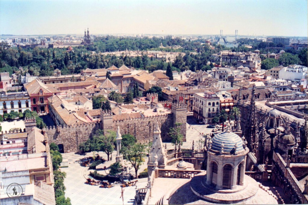 Cathedral de Sevilla มหาวิหารเซบิญ่า อยู่ไม่ไกลจาก Plaza de Españaง นั่งบัสมาลงใกล้ๆ ที่นี่เคยเป็นสุเหร่ามาก่อนในยุคที่ปกครองโดยชาวมัวร์ แล้วมาสรัางโบสถ์ทับลงไปในที่เดิม มีส่วนที่เหลือรอดสมัยเป็นมัสยิดมาคือ หอระฆัง Giralda ขึ้นไปด้านบนชมวิวเมืองเซบิญ่าได้ เดินวนๆขึ้นไปกว่าจะถึงหอระฆังเหนื่อยเหมือนกัน แต่วิวดีมากห้ามพลาด วิหารเซบิญ่าได้ขึ้นทะเบียนมรดกโลกในปี 1987 เพราะความเก่าและความยิ่งใหญ่อลังการ แถมเป็นการผสมผสานศิลปะจาก 2 ศาสนา