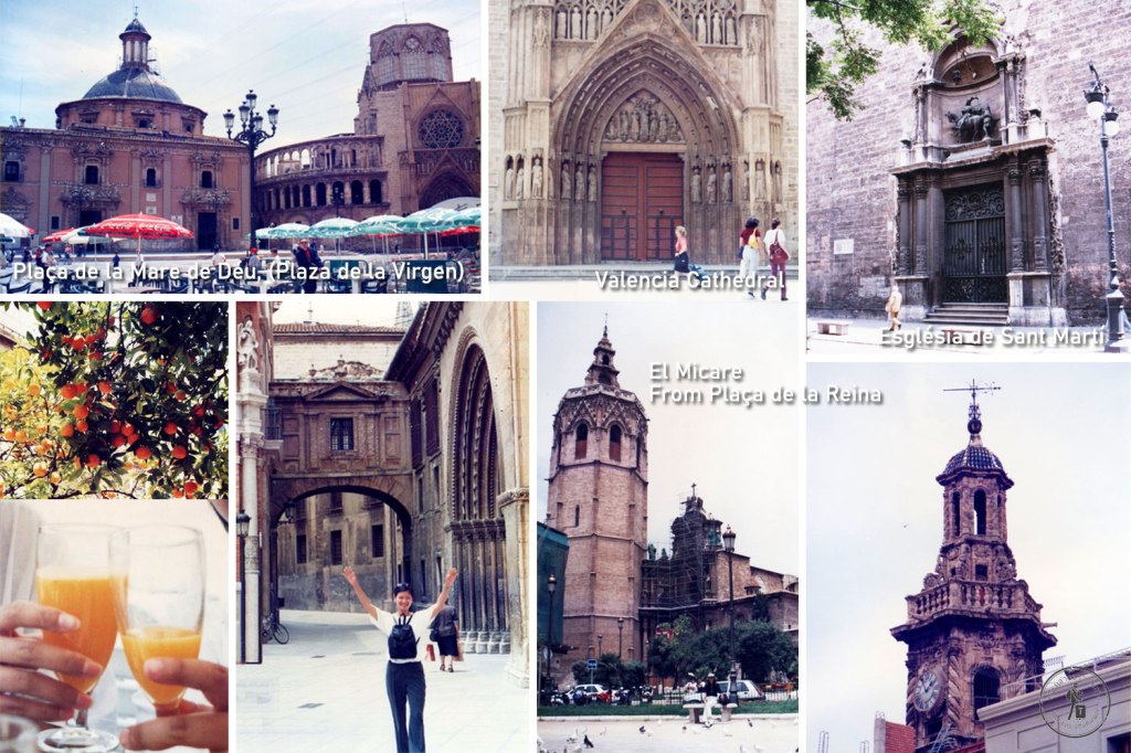 เดินลัดเลาะไปเรื่อยๆ เป้าหมายคือ Plaza de la Virgin หรือ Virgin Square ที่พวกเราเรียกกันเล่นๆว่าจตุรัสพรหมจรรย์ มีร้านคาเฟ่เก๋ๆน่ารักให้นั่งพัก วันนี้พวกเราจัดน้ำส้มคั้นสดกันคนละแก้ว เพราะบาเลยเซียได้ชื่อว่า “Land of Orange” ส้มบาเลนเซียหวานอมเปรี้ยวอร่อยสดชื่นมากบอกเลย หายเมื่อยก็เข้าไปชมมหาวิหารบาเลนเซีย Valencia Cathedral เดินทะลุข้างโบสถ์ไปด้านหลังเป็นสวนเล็กๆ Plaça de la Reina (Queen’s square) ปลูกดอกไม้กับต้นส้ม ล้อมรอบไปตัวตีกเก่า มียอดโบสถ์โผล่ไปทุกด้าน