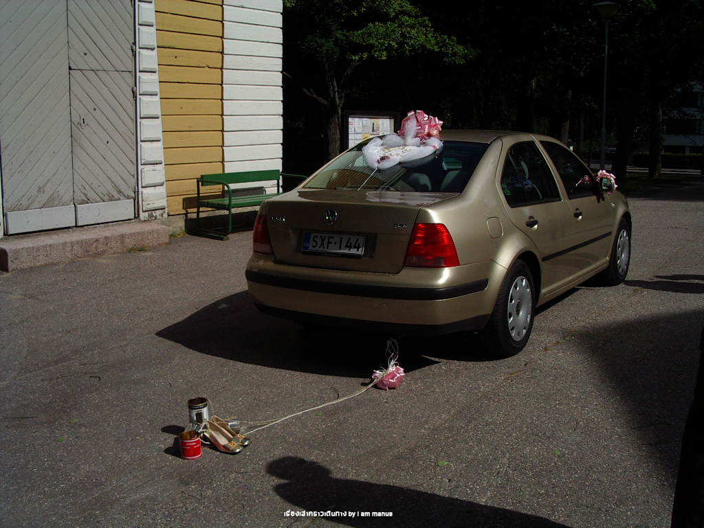 เมืองเงียบๆนี้มาคึกคักขึ้นในวันแต่งงาน ตั้งแต่พิธีที่โบสถ์ แล้วไปต่อกันกับพิธีรดน้ำสังข์ สนุก เป็นอะไรที่แปลกใหม่สำหรับชาวฟินแลนด์ ก็ทำกันแบบเก้ๆกังๆหน่อย หัวเราะกันสนุกสนาน ของแจกตอนรดน้ำเป็นมาลัย ฝรั่งชอบ ก็มันสวยจริงๆ ช่วงงานเลี้ยงก็ สนุกสนาน เต้นรำกันเหมือนที่เคยเห็นในหนัง พวกเรามาจัดตกแต่งสถานที่ด้วยกล้วยไม้ที่แบกมา ฝรั่งชอบกล้วยไม้มาก จบงานดอกไม้ตามโต๊ะหายเกลี้ยงนะ ของทุกอย่างที่ลงทุนแบกมาเป็นที่ชื่นชอบมาก คุ้มค่าแบกจริงๆ