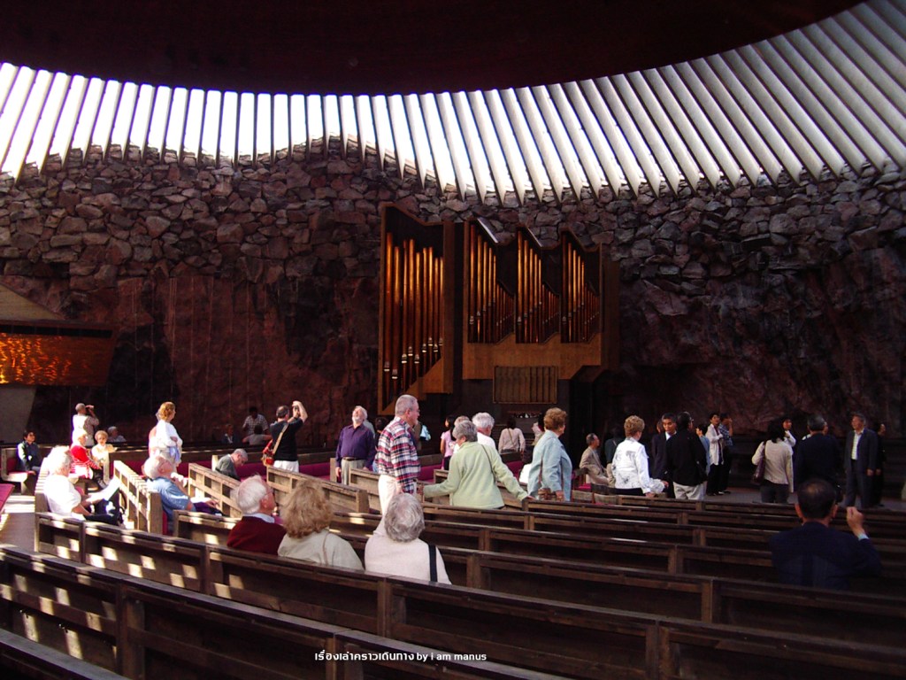 โบสถ์แปลกๆนี่เจาะภูเขาหินแกรนิตใหญ่ที่ตั้งอยู่กลางเมืองเข้าไป ออกแบบโดย Timo และ Tuomo Suomalainen เป็นสถาปนิกพี่น้องชาวฟินแลนด์ มิน่าถึงได้ชื่อว่า Rock church แต่บางคนก็เรียกว่าโบสถ์ถ้ำเพราะเหมือนเข้าไปในถ้ำ แต่ไม่มืดเพราะโถงเพดานเป็นโดมสูง เจาะช่องแสงลงมา ประดับด้วยลวดทองแดงขดทั้งเพดานโดม