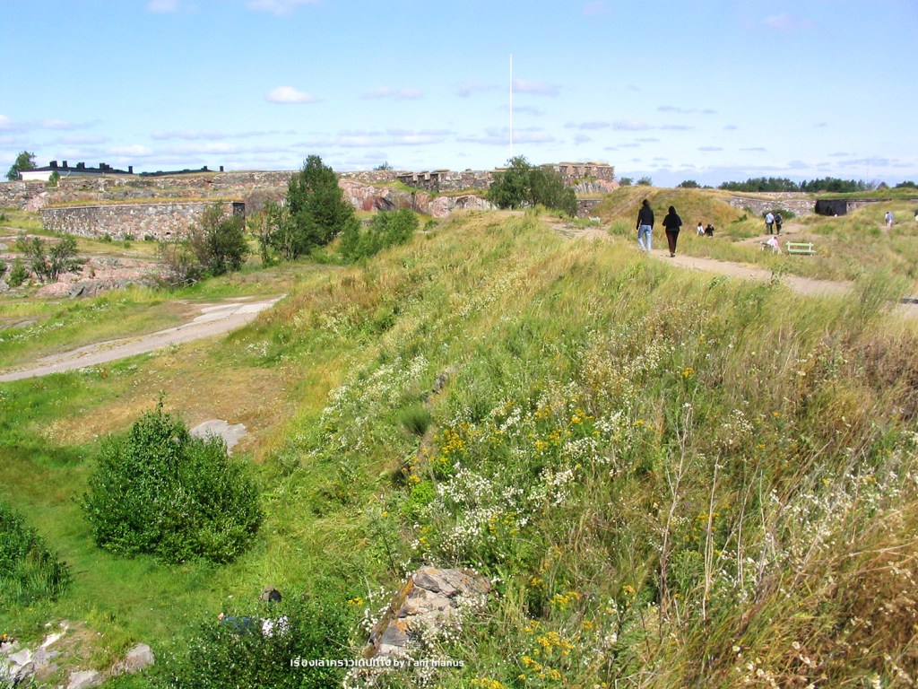 ช่วงบ่ายน้องสาวชวนนั่งเรือข้ามไปเที่ยวเกาะกัน – Suomenlinna – เป็นเกาะใหญ่มองเห็นได้จากท่าเรือ เกาะนี้เดิมเป็นป้อมปราการของชาวสวีดิช เพราะสมัยก่อนเฮลซิงกิเป็นแค่เมืองในปกครองของสวีเดน บนเกาะมีพื้นที่กว้าง มีส่วนพิพิธภัณฑ์ มีป้อมปราการ มีปืนใหญ่ หลุมหลบภัย มีอาคารทำการโบราณ คือเดินเที่ยวชมได้ทั่วๆ มีสวนสาธารณะ มีบ่อน้ำ ร้านอาหาร ร้านกาแฟ แต่พวกเราซื้ออาหารไปนั่งปิคนิคกัน การข้ามไปเกาะ ก็ไปที่ท่าเรือตรง Market Square ที่มีตลาดนัดนั่นแหละ เป็นเรือขนาดใหญ่เหมือนเฟอรี่เกาะสมุยเลย มีคนเอารถ เอาจักรยาน มอเตอร์ไซค์ข้ามไปด้วย