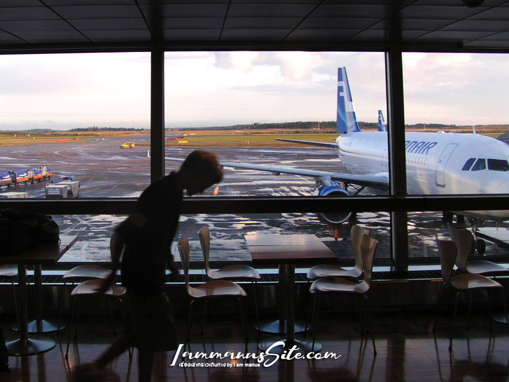 น้องสาวเลือกเที่ยวบินให้ โดยใช้สายการบิน Finnair ที่บินตรง Bangkok – Helsinki นั่งกันเมื่อยตูดพอสมควรสิบกว่าชั่วโมง ก็ถึงสนามบิน Helsinki Vantaa Airport กว่าจะผ่านตม.ออกมาได้ก็ทุลักทุเลพอสมควร เพราะพวกเราทำเรื่องขอนำเข้ากล้วยไม้เอามาจัดงานไว้ด้วย จนท.ต้องเช็คเอกสารกันวุ่นวาย ขอแกะกล่องเปิดตรวจสอบอีก แต่ก็ผ่านออกมาจนได้