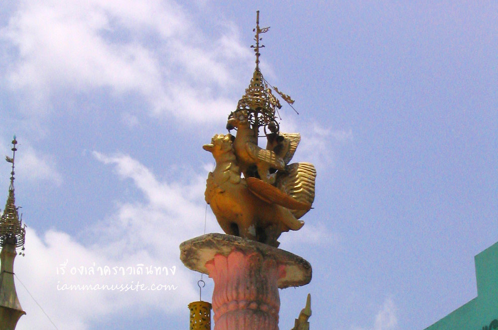นั่งรถต่อไปถึงเมือง แบ่กู (Bago) หรือ พะโค หรือในชื่อคุ้นหูว่า หงสาวดี เมืองที่คนไทยรู้จักกันดี เมืองที่มีความเกี่ยวข้องกับชาวไทยในหลายมิติ มานิตย์เล่าเรื่องราวสมัยอยุธยากับหงสาวดียกทัพกันไปมาได้เหมือนเจอตำราพงศาวดารไทย-พม่าพูดได้ แม้รายละเอียดปลีกย่อยจะต่างจากที่เราๆได้เรียนได้อ่านมาบ้าง แต่ก็ถือว่าดีที่ได้ฟังเรื่องราวจากด้านอื่นบ้าง หงสาวดีเป็นพื้นที่ของชาวมอญมาแต่โบราณ จะเจอสาวมอญตาคมผมยาว สวยมีเสน่ห์เต็มไปหมด