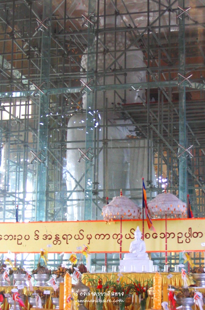 ก่อนถึงสนามบินไม่ไกล พวกเราแวะวัดสุดท้ายที่ วัดเจ๊าต่อจี บางคนเรียกวัดพระหยกขาว หรือพระหินขาว (Loka Chantha Abhaya Labha Muni | လောကချမ်းသာအဘယလဘ မုနိရုပ်ပွားတော်မြတ်ကြီ) พระพุทธรูปสูง 11 เมตรโดยแกะสลักจากหินก้อนเดียว ตอนที่พวกเราไป วัดเพิ่งจะเปิดได้ไม่นาน ยังเพิ่งยกพระหยกขาวมาประดิษฐาน มีภาพข่าวให้เห็นอยู่