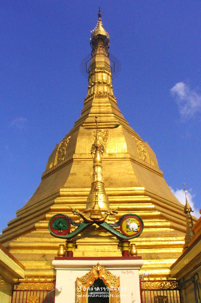 เจดีย์ซูเหล่ เป็นเจดีย์แปดเหลี่ยม อยู่ใจกลางเมืองย่างกุ้ง เป็นแหล่งรวมจิตใจของชาวพม่ามีอายุเป็นพันปีทีเดียว นานกว่าเจดีย์ชเวดากองด้วยซ้ำ ชาวพม่าจึงเคารพศรัทธากันไม่น้อยกว่าชเวดากอง รอบๆวัดมีร้านขายดอกไม้ และร้านขายของที่ระลึกรอต้อนรับนักท่องเที่ยวอยู่เต็มไปหมด ทั้งคนท้องถิ่นทั้งนักท่องเที่ยวข้ามถนนมาที่วัดกันตลอดเวลา ยิ่งขึ้นไปด้านบนวัดยิ่งแน่นจนต้องเดินเบียดกัน