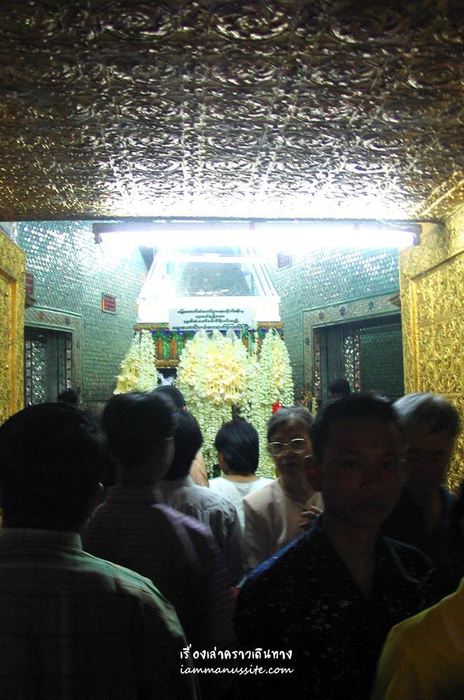 มานิตย์ชวนให้เข้าไปเดินดูในส่วนพิพิธภัณฑ์ก่อนที่มันจะปิด ก็เข้าไปเดินดูกัน มีภาพอธิบายความเป็นมาเป็นไป และการปรับปรุง ปฏิสังขรณ์องค์เจดีย์ในหลายๆคราว รวมทั้งรูปเพชรพลอยประดับยอดเจดีย์ โอ้โห…มีแต่เม็ดโตๆ ทั้งเพชร พลอย อัญมณี ทอง เงิน ทอง ที่นำมาประดับหรือหลอมรวมกันมาสร้างพระมหาธาตุนี้มาจากศรัทธาของชาวพม่าทั้งสิ้น ดูจากรูปแล้วมากมายมหาศาลจริงๆ ในขณะที่ชาวบ้านยังอยู่ในสภาพยากจนแร้นแค้น แต่กลับยอมบริจาคของมีค่ามาด้วยจิตศรัทธา!
