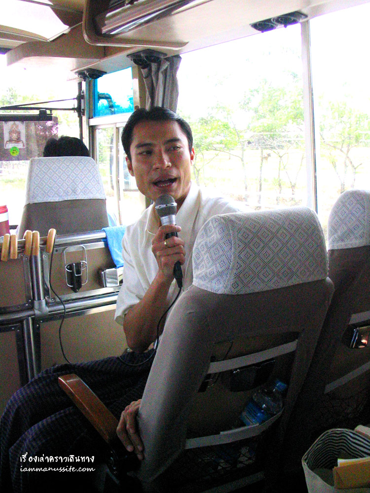 คณะทัวร์ไม่เล็กไม่ใหญ่ ราว 20 คน ขึ้นรถบัสเล็ก ที่มีพี่ไกด์พม่าสุดหล่อพูดไทยชัดมากนามว่า มานิตย์ มารับ ชื่อนี้พี่แกบอกลูกทัวร์คนก่อนๆตั้งให้ แกก็ใช้มาตลอดเพราะคนไทยจำง่ายดี มานิตย์เรียนภาษาไทย อ่านเขียนได้อย่างดี เลยถนัดนำทัวร์ไทย