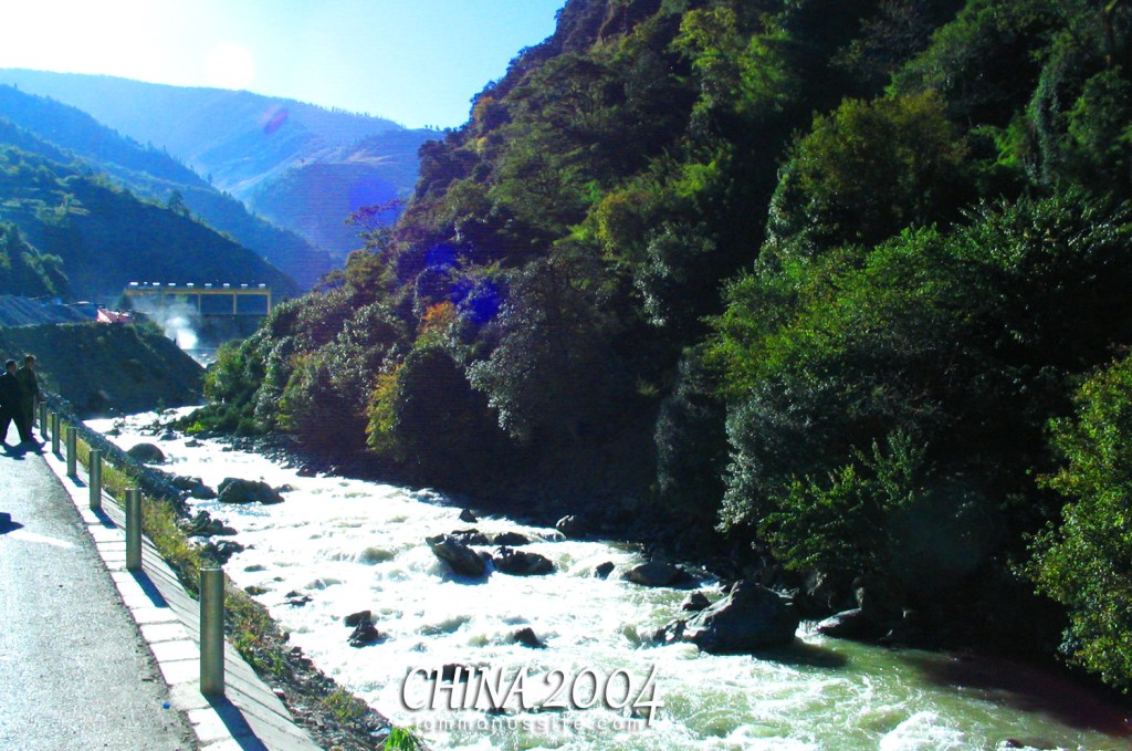 หลังจากนั้นก็นั่งหลับไปนานเลย โดนปลุกมาอีกที เข้าใจว่าเป็นจุด โค้งแรกแม่น้ำแยงซีเกียง ลงมาถ่ายรูปนิดหน่อย ไม่สวยอะไร มีเพิงขายของเหมือนจุดชมวิวแถวเชียงราย แม่ฮ่องสอน กลับขึ้นไปนั่งต่อไปอีกหน่อยก็หลับอีก ตื่นมามองเห็นลำธารริมถนนไปตลอดทาง สวยจริงๆให้ตายเถอะ เห็นแค่ลำธารก็ซี๊ดแล้ว รถจอดเพราะเจอทำทางต้องรอหลบหลีก ก็ลงมาวิ่งถ่ายรูปกันใหญ่เพราะมันสวยจริงๆ ถ้าจะเข้าห้องน้ำระหว่างทางนี้ต้องเข้าป่ากันอย่างเดียว