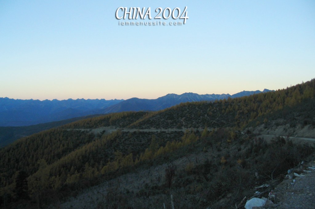 นั่งไปอีกนานเท่าไหร่ไม่รู้ หลับไปอีกแล้ว จนมาจอดรถถ่ายภาพลำธารริมทางโดยมีป่าเปลี่ยนสีเป็นฉากหลังก็สวยดี หลังจากนั้นก็หลับๆตื่นๆ ไปจอดถ่ายภาพอีกทีที่ยอดเขา เห็นวิวภูเขากว้าง แต่หนาวและลมแรงมาก มีทิวแถวของธงบทสวดธิเบตให้เป็นพร็อพในการถ่ายภาพ อุตส่าห์ปีนขึ้นไปบนเนินเพื่อถ่ายภาพแนวของธงผ้าเขียนคัมภีร์ธิเบตพร้อมฉากหลังทิวเขาแต่ลมมันแรงมาก ธงปลิวตลอดยืนรออย่างอดทนจนมือแข็งไปหมด ต้องล้มเลิก