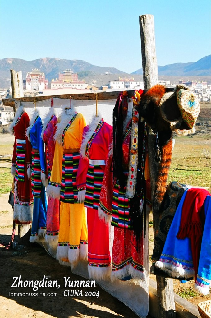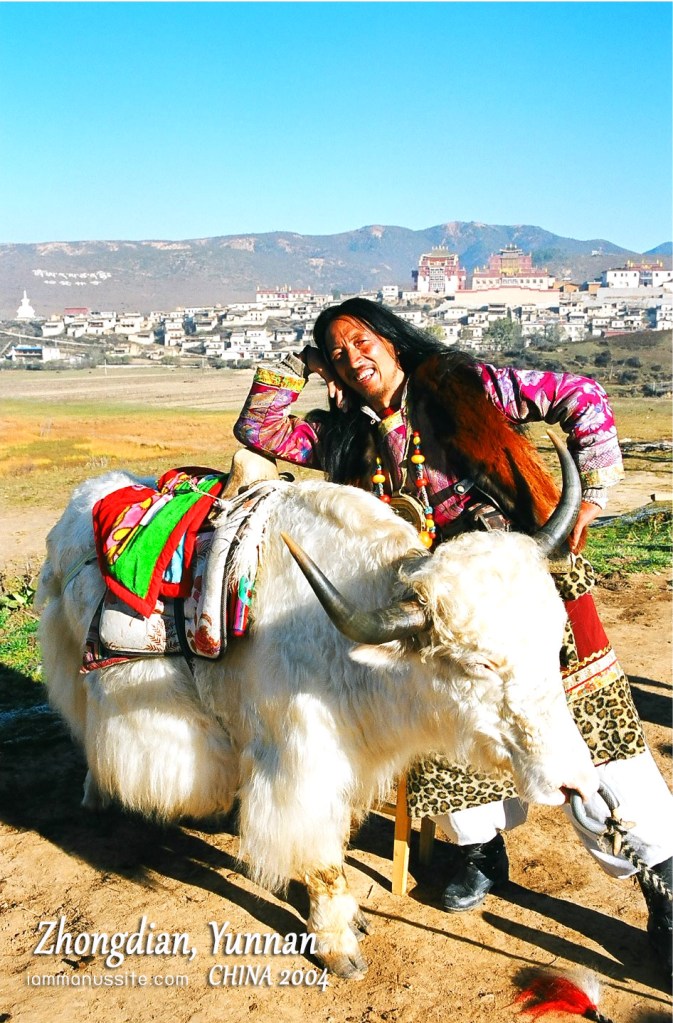 ขาออกได้มาแวะถ่ายภาพตรงจุดที่ไม่ได้ถ่ายขาขึ้น แสงส่องไปที่วัดจริงๆ แต่เป็นหมอกแดดและเป็นเงา บริเวณนั้นมีเพิงให้เช่าชุดพื้นเมืองถ่ายรูป และมีจามรีสีขาวขนยาวมาให้ถ่ายรูป เจ้าของใส่ชุดพื้นเมืองเป็นนักรบเต็มยศผมยาวหน้าตายียวนมาก ถ่ายจามรี 5 หยวน ลองถามดูว่าให้เจ้าของเข้าไปด้วยได้มั๊ย มันคิดอีก 5 หยวน รวมเป็น 10 หยวน โอ้โหแฮะ…การค้าสุดๆ จ่ายไป 10 หยวน กดไปซะ 10 รูป