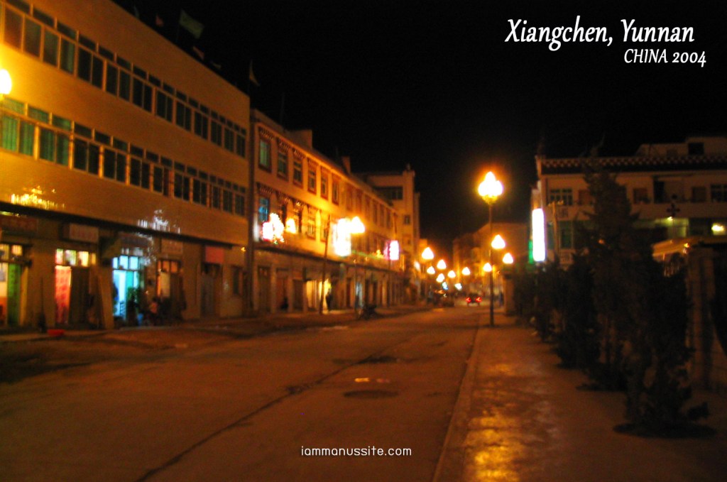 เริ่มออกเดินทางต่อเมื่อบ่ายแก่ รถวิ่งต่อไปเรื่อยๆจนมืด ทางก็เริ่มแคบ ยิ่งมืดพี่คนขับก็ยิ่งซิ่ง นั่งริมหน้าต่างเห็นริมทางเป็นหน้าผาแล้วเสียวใช้ได้เลย และแล้วเราก็ถึงเมือง เซียงเฉิง (Xiangchen, 项城市) จนได้ มาถึงก็มืดค่ำต้องเดินออกนอกรร.ไปร้านอาหาร อากาศก็หนาวสุดๆ รู้สึกเพลียและสกปรกตัวเองมาก เลยขอกลับไปห้องหามาม่ากินในห้องสบายกว่า รร.นี้ไม่มีลิฟต์ เราได้ชั้น 5 เดินขึ้นไป 2 ชั้นก็หอบแล้ว ไม่น่าเชื่อเลยว่าจะเหนื่อยง่ายขนาดนี้ ขึ้นชั้น 5 พักซะ 2-3 ครั้งได้ เราได้ห้องพักใหญ่โตมาก แต่ห้องน้ำดูเก่าไปหน่อย แถมไม่มีน้ำร้อนในอ่างอาบน้ำ แต่มีน้ำร้อนที่อ่างล้างหน้า มิน่า..ถึงได้มีกะละมังไว้ให้ 2 ใบ ต้องรองน้ำแล้วใช้ขันตักอาบ กินมาม่า อาบน้ำแล้วนอนสลบกันเลยวันนี้