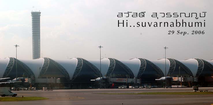 สมควรแก่เวลาก็นั่งเรือกลับ แล้วต่อสองแถวกลับโรงแรม อาบน้ำแต่งตัว เตรียมตัวไปสนามบิน เที่ยวบินตอนบ่ายบินตรงจากหลวงพระบางกลับเมืองไทยแต่คราวนี้ลงจอดที่สนามบินสุวรรณภูมิ สนามบินนานาชาติแห่งใหม่ของประเทศไทย เพิ่งได้เคยเห็นในมุมสูง มองเหมือนขนมหนอนที่เป็นไส้ครีม เพราะยาวๆเป็นปล้องๆ ภายในอาคารผู้โดยสายโอ่โถงหอมกลิ่นใหม่ ไฉไลจริงๆ แต่แอร์ไม่ค่อยเย็นแฮะ ถ่ายรูปสนามบินใหม่เป็นที่ระลึกกันนิดหน่อย ม่วนซื่นกันดีกับทริปพิเศษบินออกสนามบินเก่า กลับมาลงสนามบินใหม่