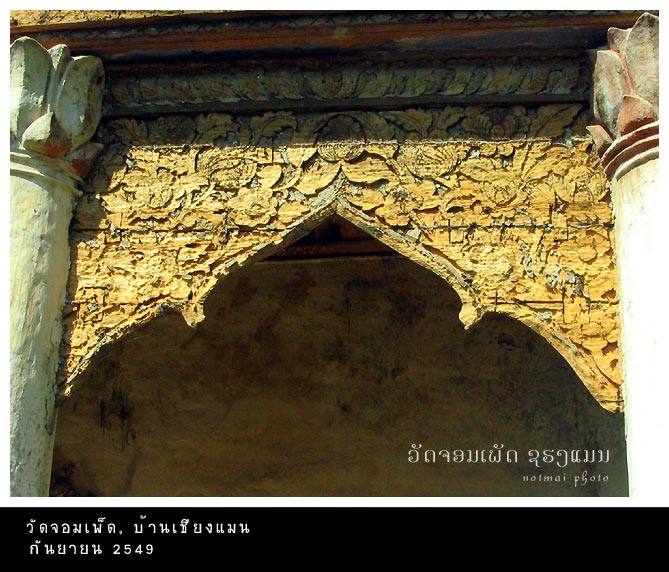 แล้วเดินไปต่อที่ วัดจอมเพ็ด (Wat Jom Phed, ວັດຈອມເພັດ) ทางเดินก็คล้ายๆ จะเดินเข้าไปในป่า ลัดเลาะไปตามทางเดิน เรื่อยๆ ไปถึงกูจะเห็นเหมือนคล้ายวัดร้าง มีสิมริมแม่น้ำโขงดูร้างๆ แต่วิวสวยและสวบมาก