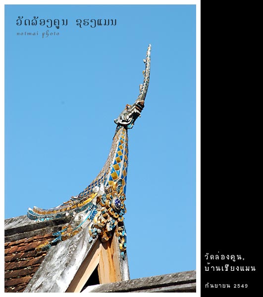 นั่งเรือไปลงที่ใกล้ๆ วัดล่องคูน (Wat Long Khoun, ວັດລ້ອງຄູນ) เป็นวัดสร้างขึ้นในสมัยเจ้าอนุรุทธ ในราวปี ค.ศ. 1791 มีความสำคัญตรงที่ ในตอนก่อนพระราชพิธีราชาภิเษกของเจ้ามหาชีวิตของล้านช้าง จะต้องมาบำเพ็ญธรรม ที่วัดแห่งนี้ก่อนเป็นเวลาสามวัน เมื่อครบแล้วจะข้ามแม่น้ำโขงไปขึ้นท่าน้ำวัดเชียงทอง เพื่อเข้าพระราชพิธีบรมราชาภิเษก สิมวัดล่องคูณเป็นลักษณะแบบพื้นบ้าน สร้างเป็นโถงเดียว หลังคาไม่ซ้อนชั้น