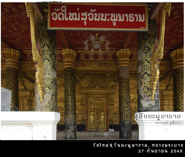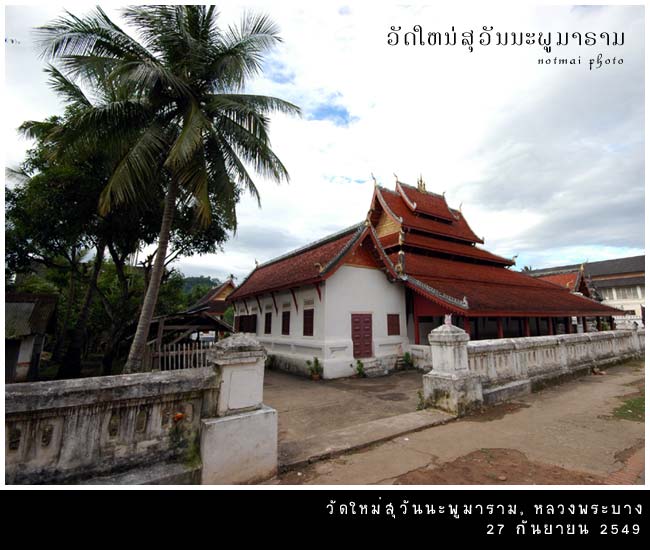 แวะเข้าไปไหว้พระที่ วัดใหม่สุวรรณภูมาราม (Wat Mai Suwannaphumaham, ວັດໃໝ່ສຸວັນນະພູມາຣາມ) เป็นวัดที่ใหญ่ที่สุดในหลวงพระบาง อุโบสถ หรือที่ชาวลาวเรียกว่า สิม ของวัดใหม่สวยตรงที่ผนังด้านหน้าสีทองอร่าม เป็นภาพเรื่องราวพระเวสสันดรชาดก ที่วัดใหม่นี้เคยเป็นที่ประดิษฐานพระบาง พระพุทธรูปคู่เมืองหลวงพระบางในรัชสมัยของเจ้ามหาชีวิตสักรินฤทธิ์ จนกระทั่งถึงปีพ.ศ. 2437 จึงได้อัญเชิญพระบางไปประดิษฐานในหอพระบางภายในพระมหาราชวัง