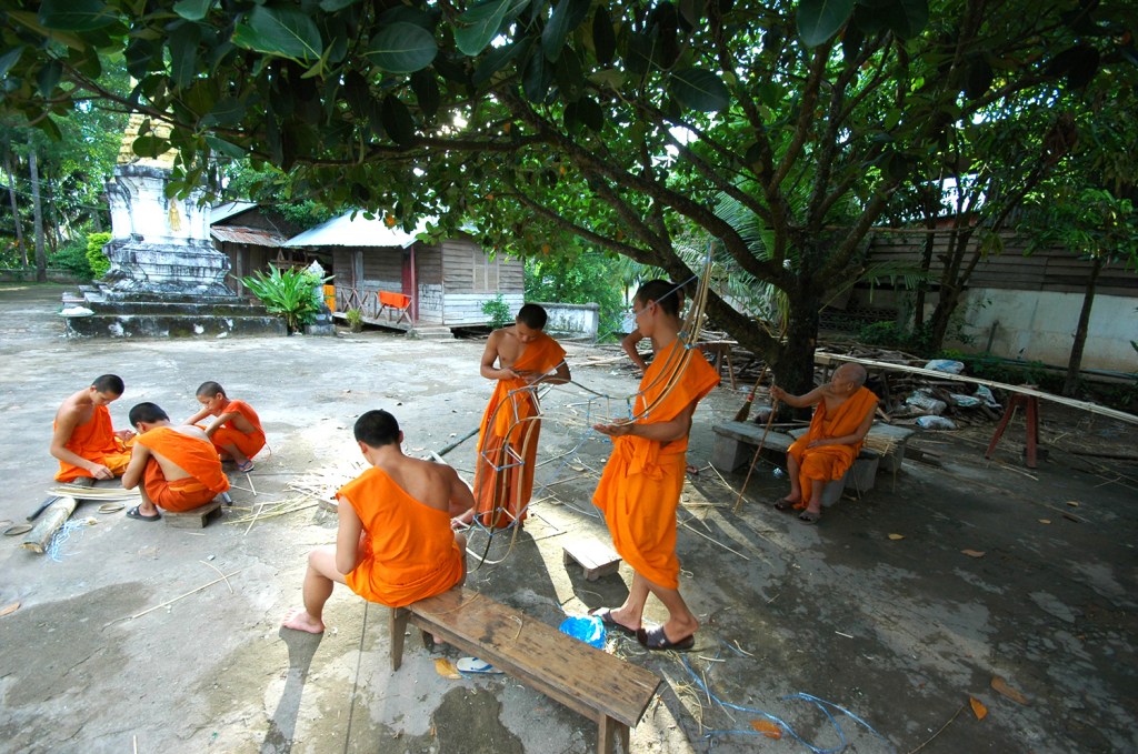 เลยไปอีกหน่อยเข้าไปที่ วัดป่าไผ่ (Wat Pa Phai, ວັດປ່າໄຜ່) เพราะเห็นพระ-เณร กำลังดัดโครงไม้ ไม่รู้เตรียมไว้ทำอะไร ก็เลยเข้าไปดู