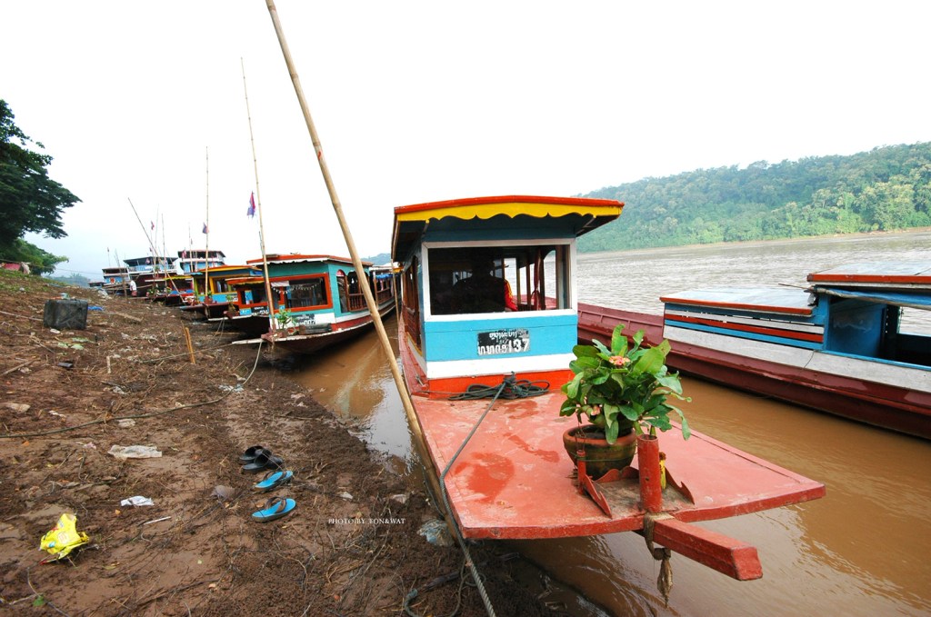 วันนี้ไม่กลับไปกินอาหารเช้าโรงแรมล่ะ หากินเฝอเอาร้านแถวริมๆแม่น้ำโขง แล้วเดินไปสอบถามเช่าเรือหางยาวเที่ยวล่องแม่น้ำสักหน่อย การมาเที่ยวลาวมันดีตรงที่พูดคุยกันพอรู้เรื่อง แค่ต้องใช้สมาธิในการคำนวณราคากันหน่อย สิบพันกีบ คือ หนึ่งหมื่น อะไรแบบนั้น