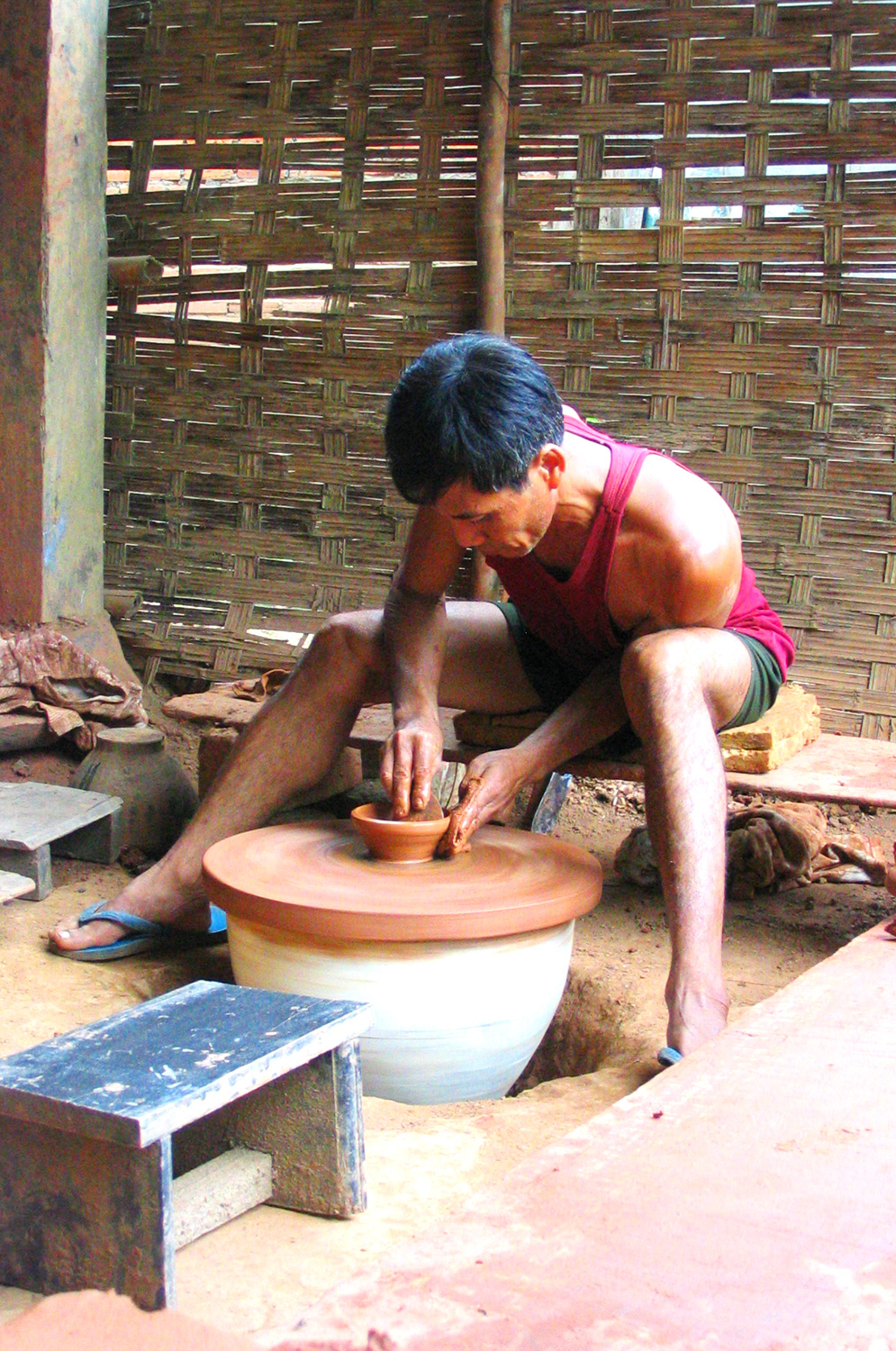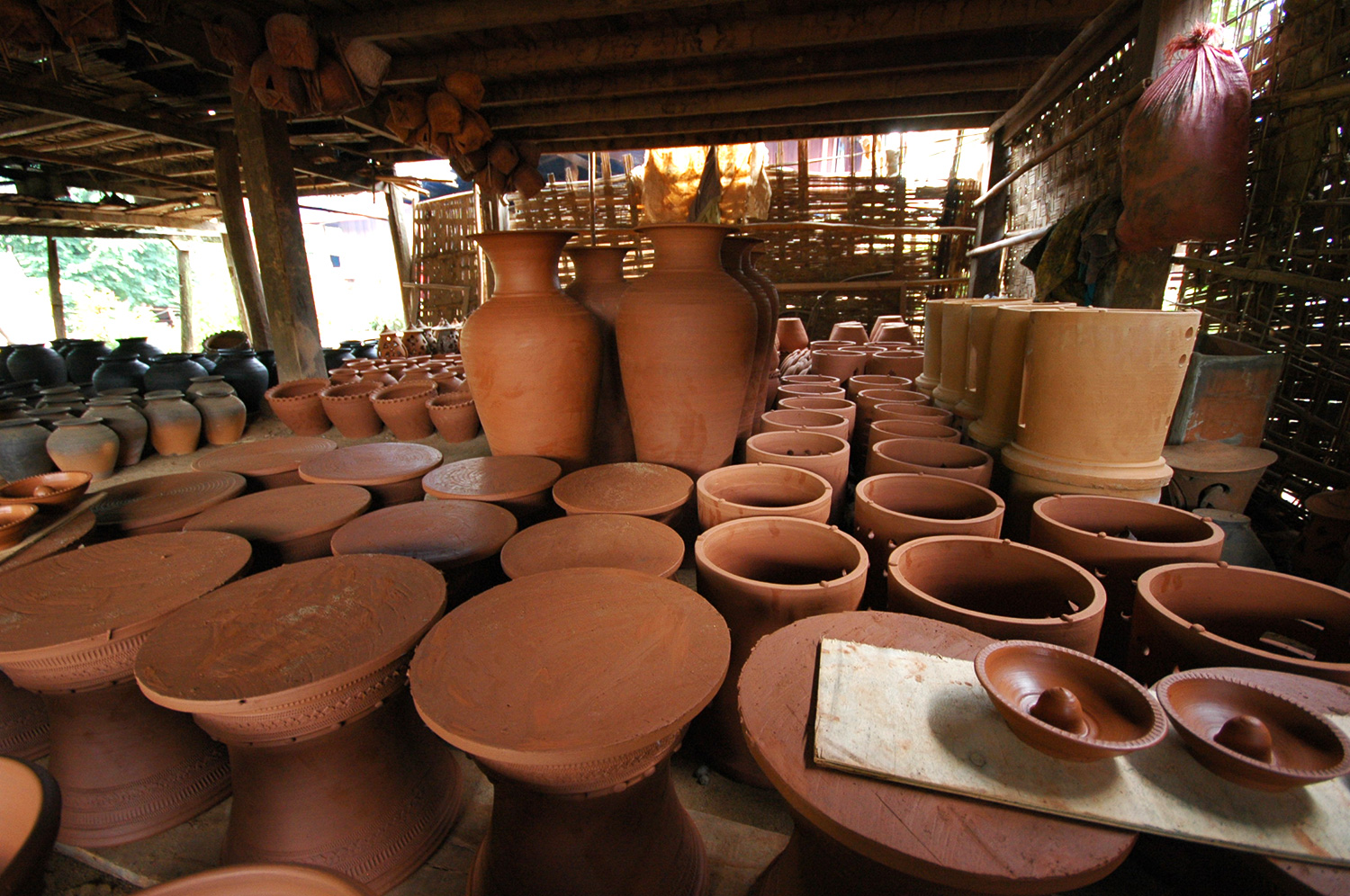 เรือพาข้ามฟากไปที่ บ้านเชียงแมน (ຊຮງແມນ) ชาวบ้านทำงานปั้นดินเป็นอาชีพ ปั้นตุ๊กตา เครื่องใช้ หม้อไหต่างๆ ปั้นแล้วเผา เดินขึ้นไปเดินเที่ยวในหมู่บ้าน แล้วแวะดูตามบ้านที่นั่งปั้นดินกันอยู่