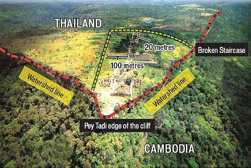 เป้ยตาดี หน้าผาสุดปลายเขตพื้นที่ปราสาทเขาพระวิหารเป็นหน้าผาชัน