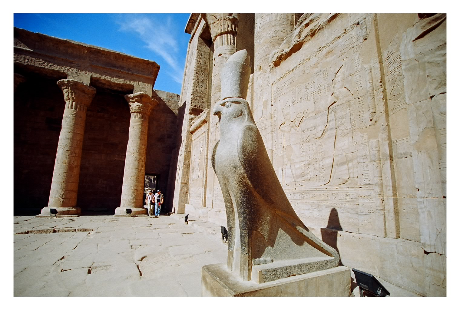 จากเมืองลักซอร์ เดินทางต่อไปที่เมืองเอ็ดฟู (Edfu) เมืองชนบทที่เป็นที่ตั้งของวิหารเอ็ดฟู วิหารแห่งเทพฮอรัส เป็นวิหารที่ยังมีความสมบูรณ์มากที่สุดแห่งหนึ่ง ซุ้มประตูขนาดใหญ่สูง 37 ม. สลักภาพการสู้รบของฟาโรห์ปโตเลมีที่ 12 ยังคงชัดเจนอยู่เต็มผนัง ประติมากรรมลอยตัวด้วยหินสีดำขนาดใหญ่ของนกเหยี่ยวตัวแทนเทพฮอรัสตั้งอยู่ทั้งซ้ายและขวาของทางเข้าวิหารส่วนใน ผนังด้านในสลักภาพการสู้รบระหว่างเทพฮอรัสและเทพเซธ บางผนังสลักเป็นเรื่องราวประเพณีวัฒนธรรมความเป็นอยู่ ซึ่งมีค่าทางประวัติศาสตร์มากมาย…. ห่างไปอีกเพียงครึ่งชั่วโมง ที่เมืองคอม ออมโบ (Kom ombo) เมืองเกษตรกรรมที่สำคัญทางแดนใต้ วิหารคอมออมโบสร้างอยู่ติดริมแม่น้ำไนล์เพื่อบูชาเทพโซเบคและเทพฮอรัส เทพที่มีศีรษะเป็นจระเข้และเหยี่ยว ผนังด้านในวิหารมีภาพสลักเกี่ยวกับความรู้ทางการแพทย์ที่ไม่น่าเชื่อสำหรับคนยุคนั้น โถงกลางยังพบภาพสลักอักษรภาพเฮียโรกริฟฟิคแสดงการกำหนดวันเดือนปีคล้ายปฏิทินในยุคปัจจุบัน เป็นหลักฐานว่าชาวอียิปต์โบราณมีความรู้ความเชี่ยวชาญแทบทุกศาสตร์สาขา