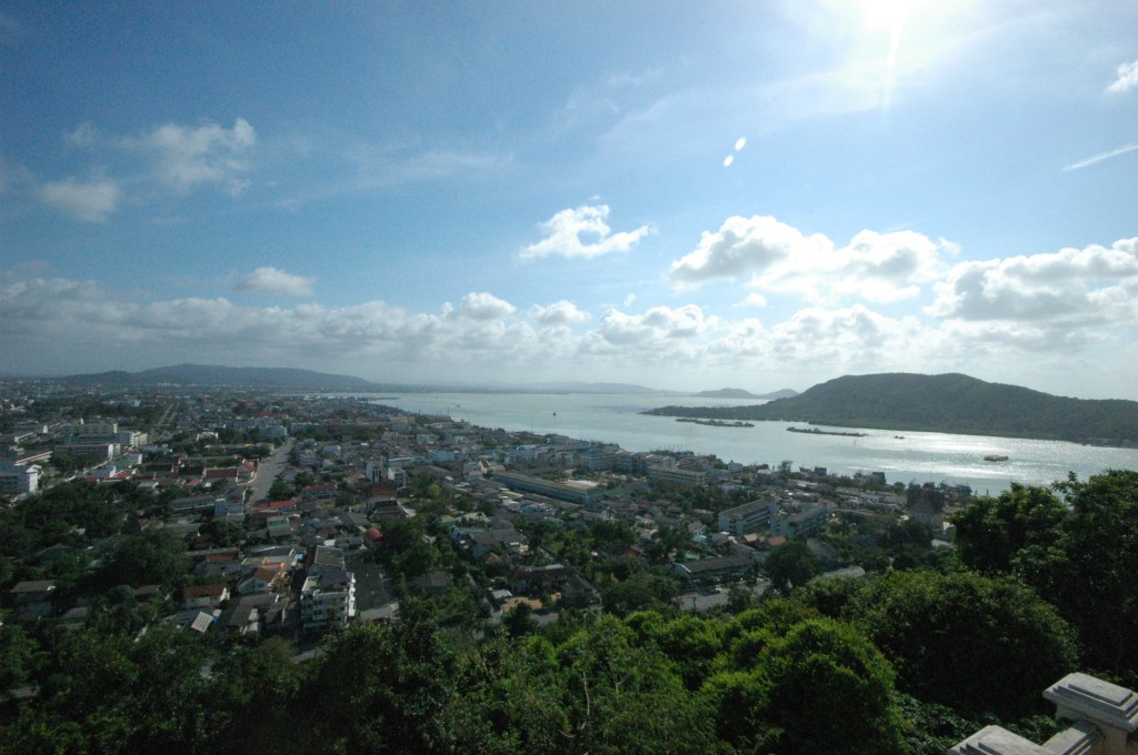 ข้ามกลับมาฝั่งเมืองสงขลา พวกเราขึ้นไปจุดชมวิวบนยอดเขาตังกวน ถ้าไม่อยากเมื่อยเดินขึ้นบันไดนาค 145 ขั้น ก็มีลิฟต์ขึ้นไปด้านบน เสียค่าบริการคนละ 10 บาท
