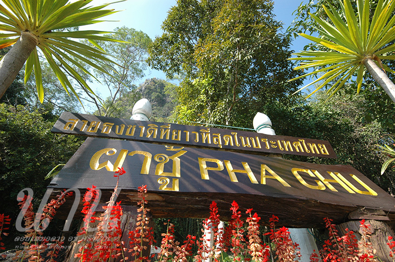 ขึ้นรถแล้วขอขับไปดู ผาชู้ หน่อย ขับต่อจากเสมอดาวไปไม่ไกลเท่าไหร่นัก ผาชู้ดูสถานที่คับแคบกว่าที่เสมอดาว แถมวิวไม่กว้างไกลด้วย ดีที่ตัดสินใจอยู่เสมอดาว เดินไปดูยอดผาชู้ เห็นสายธงชาติที่ยาวมากกกกก….เอาไว้ชักธงชาติไทยขึ้นไปยอดผาชู้ บริเวณลานหน้าที่ทำการมีจัดสวน มีดอกไม้ มีต้นจันผา สวยงามดี