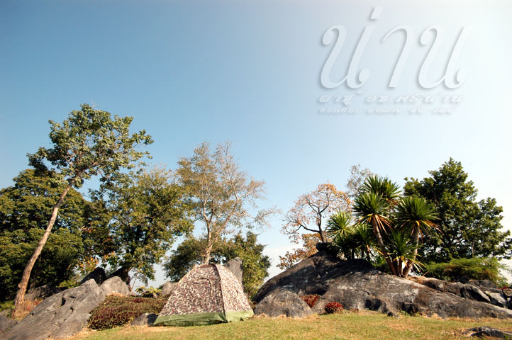 กางเต๊นท์เรียบร้อย ได้เวลาแดดล่มลมตก มองหามุมชมพระอาทิตย์ตก เห็นเนินๆหนึ่งน่าจะเห็นได้ชัด แต่มีคนไปกางเต๊นท์ยึดมุมนั้นไว้ แต่ขอเดินไปดูหน่อย ปรากฏว่าที่มุมนั้นมีศาลาชมวิวด้วย พี่แกเล่นกางเต๊นท์ 2-3 อันขวางทางไว้เลย จะไปศาลาต้องเดินแอบๆเลาะริมๆไป นับถือน้ำใจพี่จริงๆ แล้งมากๆ นอกจากเราก็มีกลุ่มอื่นอีก 2-3 กลุ่มก็ต้องกวนใจแก๊งค์พี่เขา เดินเบียดๆเตาพี่เขาไป พอเราทำท่าเหนี่ยวต้นไม้ เพราะทางเป็นลาดเขา ยังมีหน้ามาตะโกนบอกเพื่อนที่ทำกับข้าวว่า เฮ้ย…หลบๆพี่เขาหน่อย…..ตกดึกแก๊งค์นี้เอาพลุหรือปะทัดมาจุด เจ้าหน้าที่ต้องเดินขึ้นไปเตือนว่าห้ามจุด จริงๆแล้วกฏการใช้สถานที่ก็น่าจะพอทราบอยู่นะ
