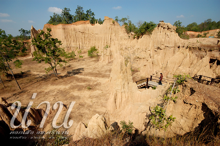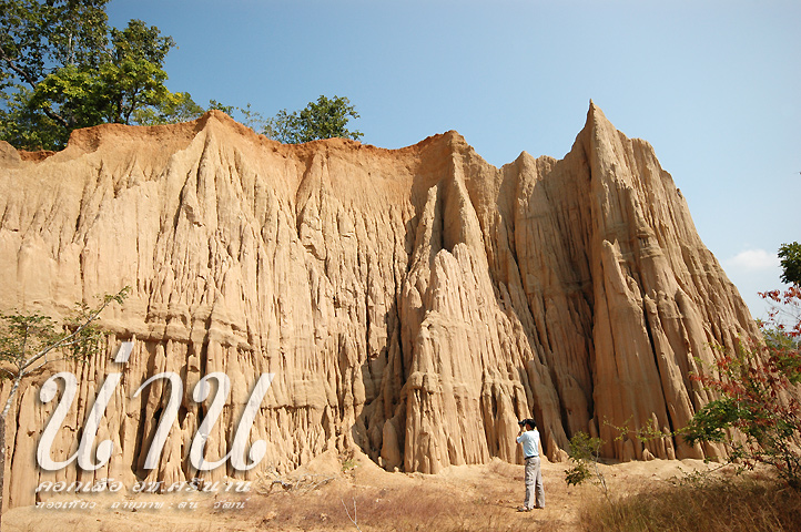 อยู่ไม่นานก็กลับออกมา จะไปแวะดู เสาดินนาน้อยกับคอกเสือ เพราะอยู่ในทางผ่านกลับเข้าเมืองอยู่แล้ว แยกจากทางหลักเข้าไปลึกเหมือนกัน ไปถึงก็ใกล้เที่ยง แดดแรงมาก แต่เราก็เดินดูเสาดินจนทั่ว ดูไม่อลังการเท่าแพะเมืองผี แต่ก็แปลกตาดี ต้นดิกเดียมที่ลานก็ไปลองลูบ ลูบแล้วลูบอีก ทั้งชายลูบหญิงลูบ ไม่เห็นกระดุกกระดิกเลย…. ขับต่อจากเสาดินไปอีกไม่ไกลเป็น คอกเสือ ลักษณะเหมือนเสาดิน แต่ว่าเป็นแอ่งยุบลงไปจากระดับพื้น 6-7 ม. จึงเป็นผาสูงสีแดง สวยดี เดินตากแดดกันจนสุกได้ที่ ก็ออกเดินทางกลับเข้าเมือง บ่ายนี้อยากกลับเข้าอ.เมืองน่านอีกครั้ง แล้วตัดสินใจอีกทีว่าคืนนี้จะนอนที่น่านหรือไปนอนที่แพร่