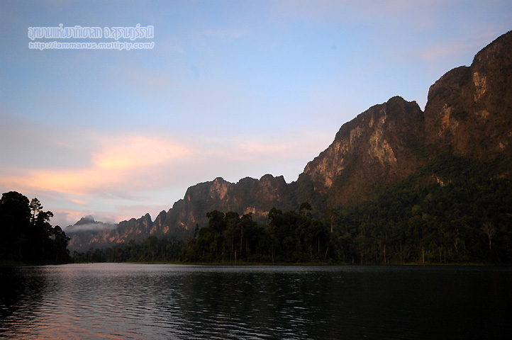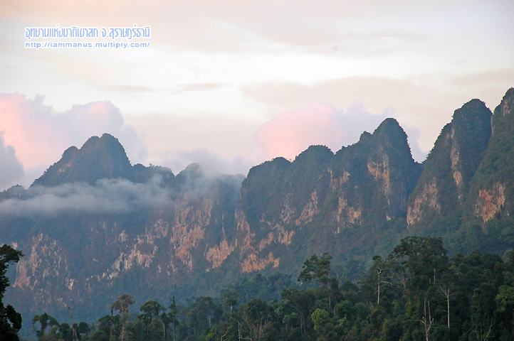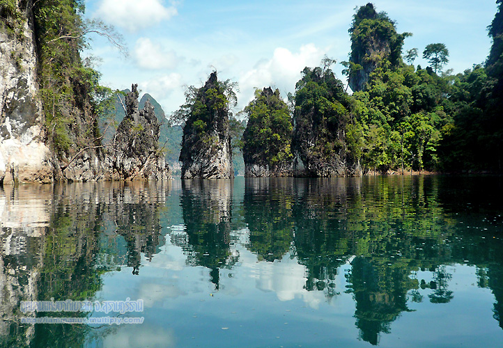 ทะเลสาบเหนือเขื่อนล้อมรอบไปด้วยภูเขาหินปูน มีคนบอกว่าเหมือนกุ้ยหลินของประเทศจีน ก็เลยเรียกทิวทัศน์ทะเลสาบเหนือเขื่อนว่า “กุ้ยหลินเมืองไทย” ซึ่งเราก็ไม่รู้ว่าเหมือนแค่ไหนยังไง เพราะไม่เคยไปกุ้ยหลิน แต่ไม่เห็นความจำเป็นจะต้องเอาไปเทียบกับประเทศอื่น ความสวยนี้ก็สวยแบบของไทยๆเรานี่แหละ