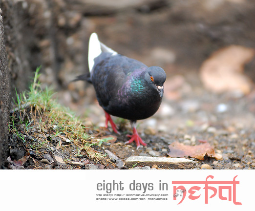 จิบกาแฟ ขนมปัง ชมวิวยามเช้าเสร็จแล้ว มีเวลานิดหน่อยเลยไปดูนกกัน ละแวกนั้นมีเหยี่ยวเยอะจริงๆ บินกันให้ว่อน ยังมีนกเขาหัวจุกด้วย อีกานี่มีทุกที่ในเนปาลอยู่แล้ว ยังมีนกสีฟ้าอีกไม่รู้อะไรมองไม่ชัด