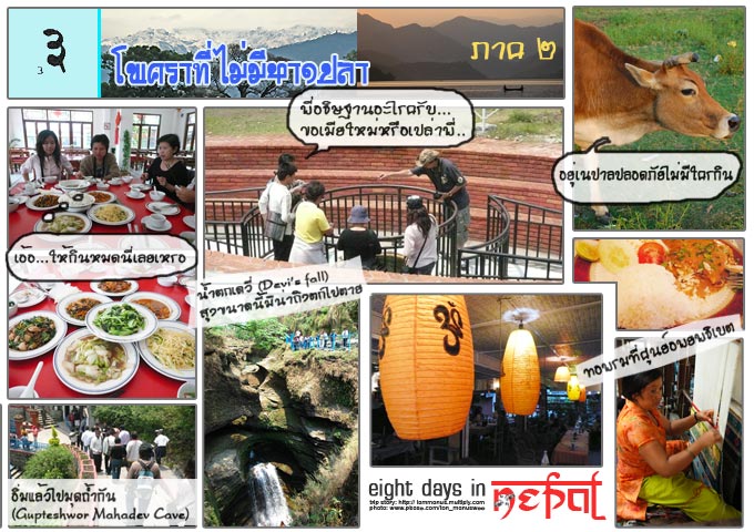 หลังอาหารออกนอกเมืองไปหน่อยไปดู ถ้ำพระศิวะ (Gupteshwor Mahadev Cave) ถ้ำนี่ต้องเดินลงไปใต้ดิน ห้ามถ่ายรูป (ทำไม?) ด้านล่างมีรูปสลักพระศิวะที่บอกว่าค้นพบที่ถ้ำใต้ดินนี้ มีชาวฮินดู ชาวพุทธไปสักการะแต้มติกากัน หากต้องการเดินลึกลงไปอีกต้องจ่ายเงินเพิ่ม ด้านล่างลงไปถ่ายรูปได้ เข้าใจว่าคงเป็นถ้ำหินงอกหินย้อย พวกเราไม่ได้ลง ดูที่บ้านเราก็มี จริงๆขี้เกียจ ไกด์ก็ขี้เกียจ ฮา…