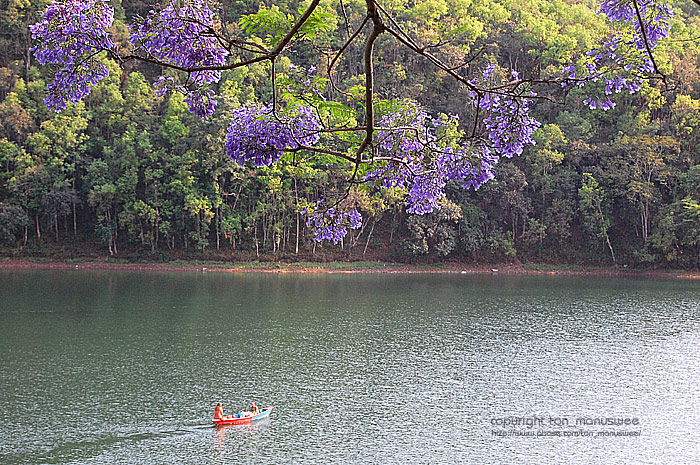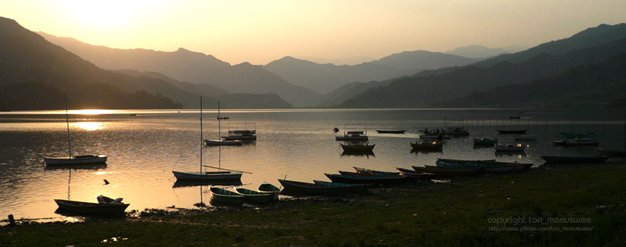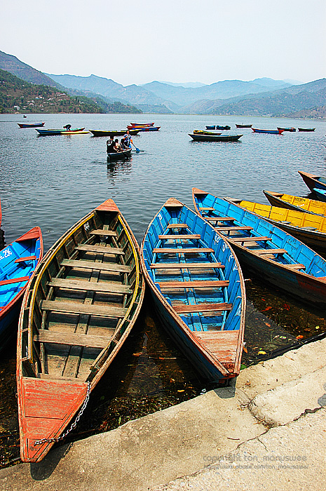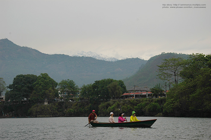 จากแม่น้ำสีนม ย้อนกลับไปริมน้ำเฟวา เราจะนั่งเรือล่องทะเลสาปและข้ามไปวัดทองที่เกาะกลางทะเลสาบ จริงๆแล้วมีท่าเรือที่นั่งข้ามไปวัดได้ใกล้ๆแหละ แต่แหม…นะ ไปไกลๆหน่อยจะได้นั่งเรือชิลๆชมทะเลสาบด้วย ระหว่างนั่งรถไปจุดลงเรือ หันไปมองด้านหลัง กรี๊ด…….หิมาลัยๆๆ มันโผล่มาแล้ว เห็นแล้วๆ แต่เห็นไม่เป็นเทือกยาวๆ แค่เห็นเป็นหย่อมๆ ลงเรือล่องทะเลสาบพอมองเห็นเทือกเขาหิมาลัยเป็นฉากหลังบ้าง แม้ไม่แจ่มแจ๋วแต่ก็พอเยียวยาหัวใจเหี่ยวเฉาของพวกเราได้….