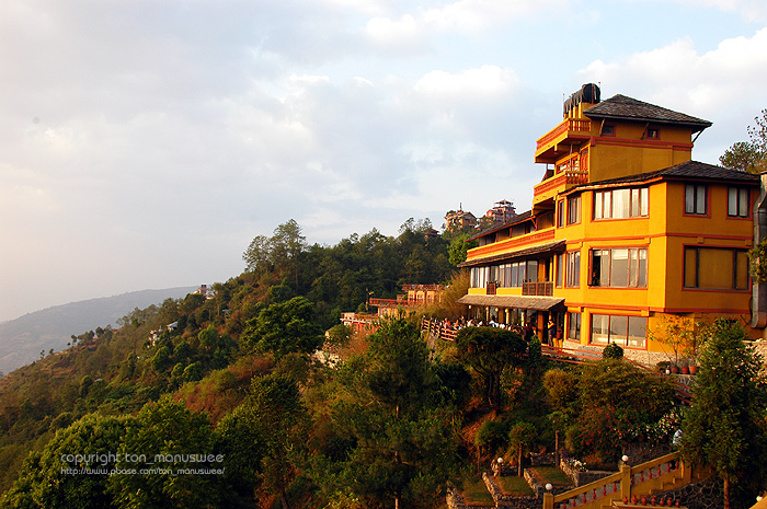 คืนนี้ไปนอนที่ Dhulikhel เมืองเล็กๆบนเขา ซิ่งรถออกไปจากกาฏมาณฑุแค่ชั่วโมงกว่าก็ถึงแล้ว ผ่านตัวเมืองดุลิเคลก่อน แต่เราเลยขึ้นเขาไปอีกหน่อยไปพักที่ Dhulikhel Mountain Resort ที่พักน่ารักอีกแล้ว มองเห็นวิวเทือกเขาได้กว้างไกล เก็บของเข้าที่พักแล้ว อารบินบอกว่าเราจะเดินไปเที่ยวหมู่บ้านกัน เออ วันแข็งแรงไม่ยักพาเดินนะพ่อหนุ่ม แต่มีหรือจะไม่สู้