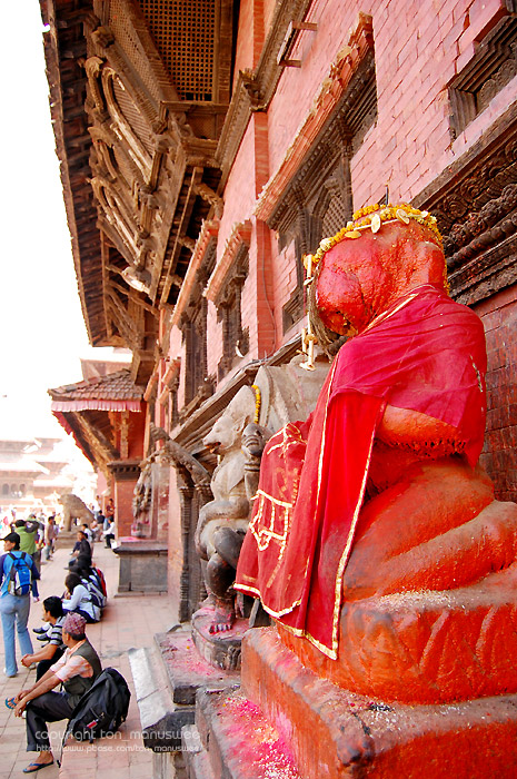 ลงมาเดินเข้าไปชมเทวาลัยต่างๆใกล้ๆ เห็นลวดลายสลักสวยมากๆ ที่ปาตันก็มีหนุมานโดกาเหมือนกัน โดนพอกและสาดสีแดงจนไม่เหลือเค้าโครงเหมือนกันเลย