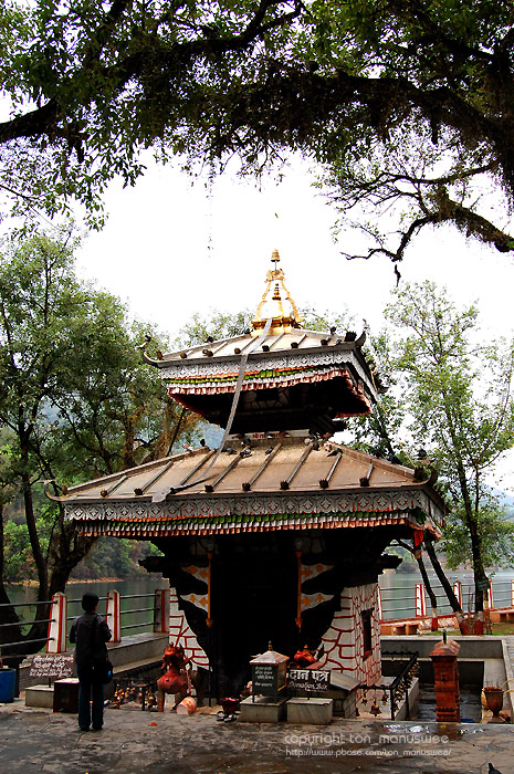 นั่งเรือไปขึ้นเกาะกลางทะเลสาป บนเกาะมีวัดชื่อ วัดบาลาฮี (Barahi Temple) บางคนเรียกวัดทอง เพราะมีเทวสถานสีออกทองๆ เป็นวัดที่บูชาเจ้าแม่กาลี เดินเล่นไปรอบๆเกาะชมวิวทะเลสาบพร้อมหิมาลัยรางๆ เรือที่ทะเลสาบนี่เหมือนๆเรือแจวบ้านเราเลย แต่ทาสีสดใสต้อนรับนักท่องเที่ยวมากๆ