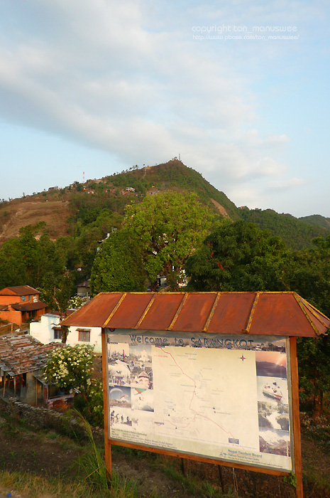 Morning call ตอนตีสี่ครึ่ง ลืมตาตื่นมาพร้อมเสียงฮูมๆ แสงแว๊บๆๆนอกหน้าต่าง เฮ้ย! ฝนตก ทำไมมันไม่ตกตั้งแต่เมื่อคืนวะ มาตกตอนเช้าทำไม ลงไปปรึกษาอารบินที่ด้านล่างว่าเรายังจะไป ยอดซารังกอต (Sarangot) กันหรือไม่อากาศอย่างนี้ เปลี่ยนไปพรุ่งนี้ดีกว่ามั๊ย? เจ้าบินโทรปรึกษาตาบารัท แกบอกว่าไปเถอะ เห็นมีรถขึ้นไปหลายคันแล้ว เดี๋ยวฝนก็หยุด นี่ก็ซาแล้ว เอาวะ เชื่อ เพราะพี่แกเป็นคนโพครา เจ้าถิ่นว่าอย่างนี้ไม่เชื่อได้ไง