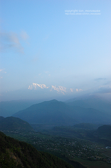 อาหารเช้ามื้อสุดท้ายที่เนปาล พวกเรานั่งคุยกัน แลกเปลี่ยนที่อยู่ email address กัน บางคนบอกชอบอยากมาอีก บางคนบอกเฉยๆไม่มาแล้ว สำหรับเราคนที่ไม่คาดคิดว่าจะได้มาเนปาลในตอนนี้ กลับใส่ชื่อเนปาลลงไปในรายการท่องเที่ยวปีหน้าอีกครั้ง ก็ต้องมาตามหาหิมาลัยนี่ ขอเห็นชัดๆเต็มๆตา ชนิดว่าเดินไปที่ไหนเมืองไหนก็มีหิมาลัยขาวๆเป็นฉากหลังเถอะ