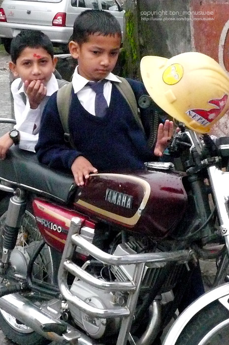 เราลงจากวิวพอยต์แทบจะเป็นคนสุดท้าย ดูให้ซึมซาบกันไปเลย ระหว่างทางลงเขา เห็นเด็กๆเดินกันลงมาเป็นแถวเพื่อไปโรงเรียน เย็นเลิกเรียนก็คงเดินขึ้นเขากลับบ้านกัน เป็นอย่างนี้อาทิตย์ละ 6 วัน เพราะที่เนปาลเขาหยุดวันเสาร์วันเดียว โรงเรียนเข้าสายเกือบสิบโมง เลิกสี่โมงเย็นได้ เหนื่อยแทน