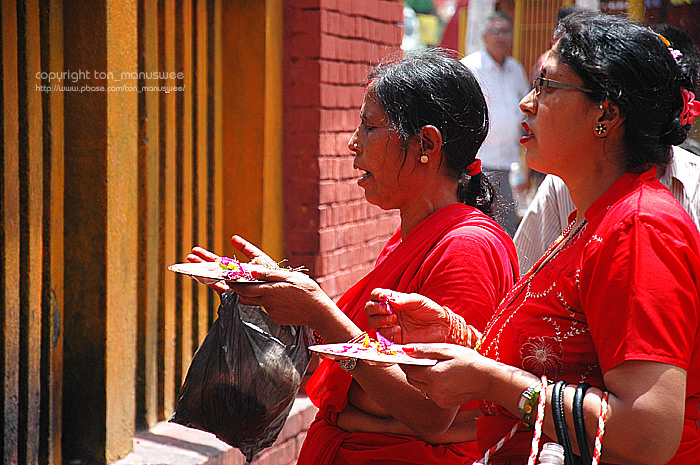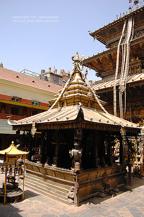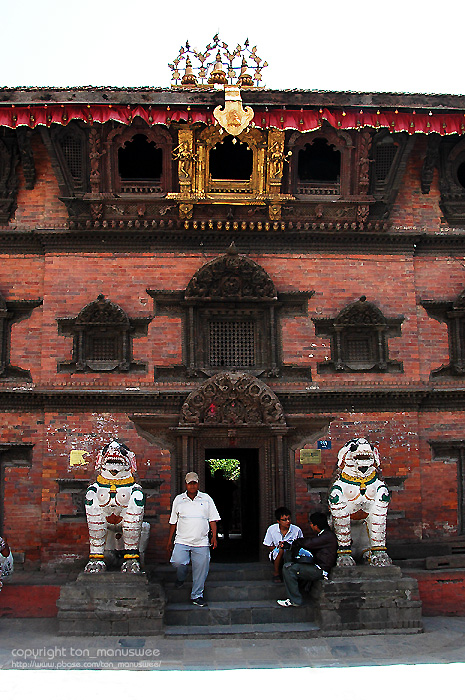 ไฮไลต์อีกที่คือ วัดทอง (Hiranya Varna Maha Vihar หรือเรียกกันว่า Golden temple) เพราะเป็นวัดสีทองอร่าม ที่นี่คนใส่รองเท้าหนังต้องเปลี่ยนรองเท้าก่อน เพราะเป็นวัดฮินดูจึงไม่ให้รองเท้าที่ทำมาจากหนังสัตว์อย่างหนังวัวเข้าไปในบริเวณวัด วัดนี้มีอาของอารบินเป็นมรรคทายกเชียวนะ อารบินบอกว่าเขาก็เคยบวชที่นี่ เฉพาะคนตระกูล ศากยะ เท่านั้นจึงจะบวชที่นี่ได้ ตระกูลศากยะนี่เป็นตระกูลชาวเนวารีดั้งเดิม เป็นเนปาลท้องถิ่นแท้ บ้างก็ว่าเป็นเชื้อสายมาจากพระพุทธเจ้าเชียว ไกด์เรานี่ไม่ใช่ธรรมดานะ บวชที่วัดทองนี่แล้วก็ไปบวชที่วัดสระเรียงเมืองไทยอีก เราแซวว่าเป็นชาย 2 โบสถ์แล้วนะเรา อันนี้อารบินไม่เข้าใจ ฮ่าๆๆ… ว่าถึงวัดทองนี่ สวยงามทองอร่าม ถึงจะทาสีบ้างทองจริงบ้างก็จัดว่างาม มีงานหล่อทองเหลืองรูปสักการะต่างๆงดงามเต็มไปหมด เพราะเมืองปาตันนี่มีชื่อทางงานหล่อทองเหลืองพระพุทธรูป และรูปต่างๆ