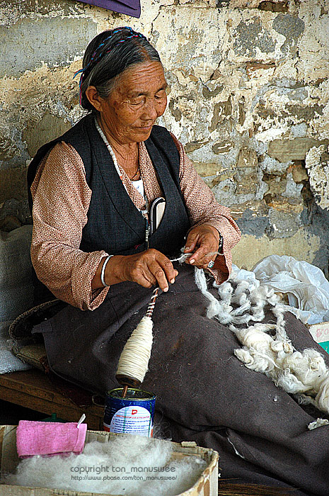 อยู่กันไม่นานก็ออกมา นั่งรถไปอีกนิดเดียวเลี้ยวเข้าซอย ไป ค่ายอพยพชาวธิเบต (Tibetan refugee camp หรือ Tashiling handicraft center) มีงานทอพรมสาธิตให้ดู พรมพวกนี้ทำแล้วส่วนมากส่งออกไปอเมริกากับยุโรป ลายสวยๆทั้งนั้น เข้าไปเดินในโชว์รูมได้ อยากซื้อก็ได้ เห็นพวกฝรั่งเขาซื้อกัน แต่พี่ไทยขอถ่ายภาพแล้วกลับไปซื้อเสื่อแถวบ้านปูพื้นดีกว่า
