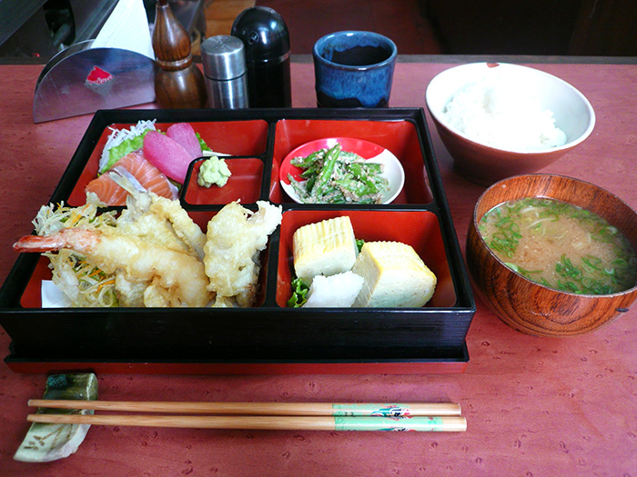 มื้อเที่ยงวันนี้เป็นอาหารญี่ปุ่นร้าน Kotetsu อารบินว่าอร่อยสุดแล้วในกาฏมาณฑุ ทัวร์นี้แปลกดีมีอาหารหลากหลายมาก….กันเบื่อ กินเบนโตะคนละเซ็ตอิ่มแปร้ มองไปรอบร้านเห็นเขาแขวนป้ายที่คนเขียนชมไว้เยอะแยะ สงสัยพวกคนดังมาชิม บอกอารบินว่าอยากเขียนบ้าง มันไปบอกเขาจริงๆ เจ้าของร้านก็บ้าจริงเอามาให้เขียนด้วย เขียนภาษาอังกฤษชมไปนิดหน่อย เปิ้ลเขียนภาษาญี่ปุ่นได้เลยเขียนชมไปว่าโออิชิ พอเจ้าอารบินคนเนปาล มันเขียนภาษาไทย!! แถมเป็นภาษาใต้ด้วย มันว่า อาหารหรอยมาก ฮ่าๆๆๆ เอากะมันสิ ใครไปร้านนี้ช่วยดูด้วยว่าเขาติดไว้มั๊ยหรือพอเรากลับมันก็โยนทิ้ง ฮา