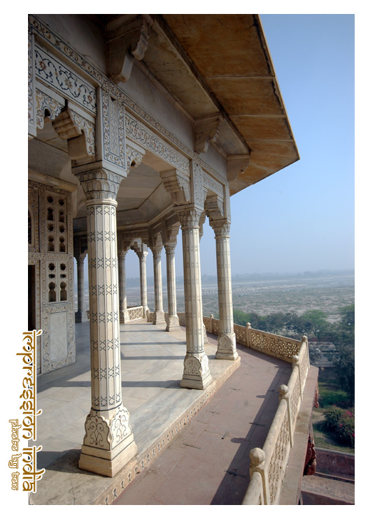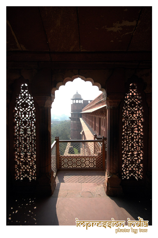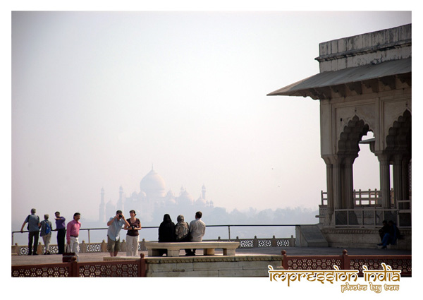 อัคราฟอร์ทนี้เป็นที่พักสุดท้ายของกษัตริย์ชาห์จฮาน พระองค์โดนลูกชายคือเจ้าชายโอรังเซบจับมาอยู่ที่นี่แล้วลูกชายก็ขึ้นครองราชย์เอง เล่ากันว่าเพราะลูกชายกลัวว่าพ่อจะเอาเงินทองไปสร้างปราสาทราชวังอีกฝั่งของแม่น้ำยมุนาเพื่อเป็นอนุสรณ์แห่งความรักอีกอันหนึ่ง คราวนี้สร้างเป็นทัชแบบสีดำ อย่ากระนั้นเลยพ่อ เงินทองจะร่อยหรอ พ่อมาอยู่ซะที่นี่ จากที่นี่ก็มองเห็นทัชมาฮาลได้ เขาว่ากันว่าชาห์จฮานนั่งมองทัชจากป้อมนี้จนตายในที่สุด ไอ้เราก็อยากเห็นบ้างว่าการมองทัชมาฮาลจากที่นี้จะสวยงามซาบซึ้งขนาดไหน แต่ความรู้สึกที่ได้ก็คือหมอกจางๆและควันเหมือนเดิม……บุญกุศลทำมาน้อยฟ้ายังปิดอยู่อย่างนั้น เลยได้มองทัชแบบรางๆเลือนๆต่อไป….