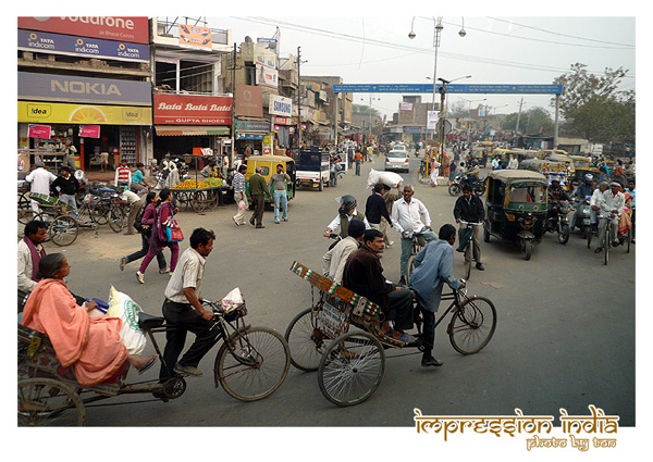 คืนนี้จุดหมายที่พักคือเมืองอัครา ไม่ได้นอนที่เดลีหรอก ดังนั้นบ่ายแก่ๆเราก็ต้องนั่งยาวบึ่งไปเมืองอัคราซึ่งห่างจากเดลีไปราวๆ 200 กม. แต่ใช้เวลาร่วม 4 ชม. รถมันก็ติดได้ตลอดทางซิน่า ผ่านชุมชนเมื่อไหร่เป็นติด ระหว่างทางผ่านตลาดหลายที่ น่าถ่ายรูปมากๆ มาอินเดีย จะได้เห็นอินเดียจริงๆก็ต้องผู้คนนี่แหละ ยิ่งตามตลาด ท่ารถ ท่ารถไฟ นั่นแหละถึงจะได้สัมผัสอินเดียจริงๆ อึดอัดขัดใจเป็นอย่างยิ่ง ยกกล้องมาถ่ายผ่านกระจก ดึงซูมยาวไปหน่อยพลาดไปชนกระจกดังโป๊กๆ สัก 2 ครั้ง ก็ต้องยอมแพ้ งัดกล้อง compact ตัวน้อยมาส่องแทน พอได้ถูๆไถๆ เที่ยวทัวร์ก็อย่างนี้แหละต้องยอมรับ ไม่ใช่ทัวร์ถ่ายภาพนี่หว่า คิดได้ดังนั้น จึงนั่งยิ้มโบกมือกับชาวบ้านแทน……