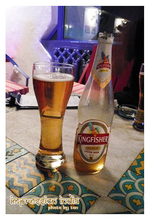 วันนี้เป็นวันที่ได้กินข้าวเร็ว ดีใจจริงๆ เมื่อเช้าบ่นกับคุณหนึ่งว่าอยากกินเบียร์อินเดีย นี่ก็คืนสุดท้ายแล้วน่าได้ชิมหน่อย คุณหนึ่งบอกว่าเบียร์อินเดียก็ต้อง King fisher ตอนอาหารเย็นแกรีบมาส่งข่าวว่าไปลองดูบาร์ที่ชั้น 8 แล้ว น่านั่งมากเป็น outdoor นั่งจิบเบียร์ชิลๆท่าจะดี คุณหนึ่งท่าจะหิวเบียร์เพราะแกโซ้ยข้าวเย็นเร็วมากแล้วบอกว่าไปรอชั้น 8 นะ เสร็จแล้วเราก็รีบตามไปเพราะหิวเบียร์เหมือนกัน ฮ่าๆๆ…ไปถึงแล้วโอ้ว….น่านั่งจริงๆ ลมเย็นจนหนาว จิบเบียร์อินเดีย พร้อมฟังแกหลอกขายทัวร์ไปเรื่อยๆ ที่โน่นสวย ที่นี่สวย น่าถ่ายรูป ฟังจนเคลิ้มเก็บเข้า list ไปหลายที่ ฮ่าๆๆๆ…..ไม่ยักมีใครตามมาอีก นั่งกันอยู่ 3 คน จนชักหนาว เลยแยกย้ายกันกลับห้องไปนอน…..