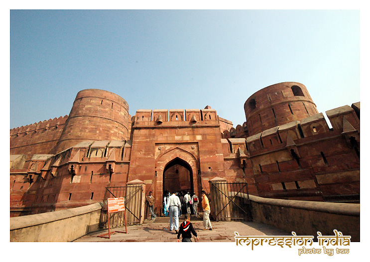 ออกจากทัชมาฮาล นั่งรถต่อไปอีกไม่ไกลเพื่อไปดู อัคราฟอร์ท (Agra fort) ป้อมปราการใหญ่ยักษ์อายุนับร้อยปี ที่นี่เราต้องเดินตามอับดุล ไกด์อาวุโสผู้คอยบอกเล่าประวัติต่างๆของป้อมนี้ คุณหนึ่งกำชับว่าอย่าแตกแถว ให้เดินตามๆกันไป เพราะป้อมอัครานี้ใหญ่มาก ต่างคนต่างเดินจะหลงกันหากันไม่เจอ เราก็เดินตามกันไปอย่างว่าง่าย กว่าจะสร้างอารมณ์ในการถ่ายภาพแต่ละมุมได้ก็โดนเรียกให้ไปต่อแล้ว ประเภทที่จะมารอมุมคนว่างก็อย่าหวังแค่พวกลุ่มเราเองก็สิบกว่าคนแล้ว ต่างคนต่างถ่าย ต้องรอพวกเราเอง move ไปก่อนแล้วรีบกดๆๆๆ ก่อนกลุ่มอื่นจะเข้ามา และก่อนจะโดนอับดุลกับอาเจ๊ดงาบหัว….ถ่ายไปเครียดไป….