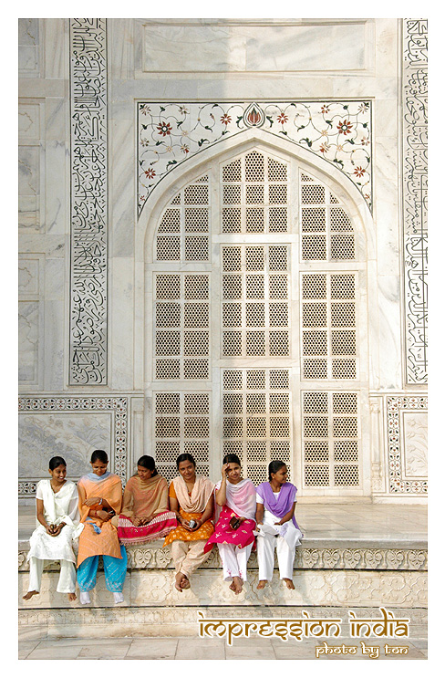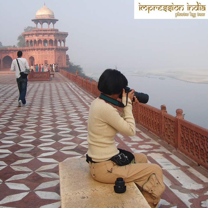 ได้เวลาอยู่ในทัชแค่ประมาณ 2 ชม. ยังไม่ได้ภาพที่ถูกใจเลย ยังไม่ได้จังหวะสาวเดินส่าหรีปลิวกับฉากทัชมาฮาลเลยด้วย นี่เป็นพร็อพที่คิดไว้ตั้งแต่รู้ว่าจะได้มาทัช แต่ถึงเวลาจริงๆมันไม่ได้มีเวลารอจังหวะขนาดนั้น เลยหันมาถ่ายรูปเพื่อนเราเดินนวยนาดข้างทัชแทน…เฮ้อ…
