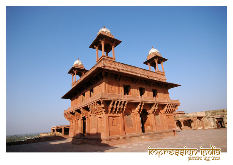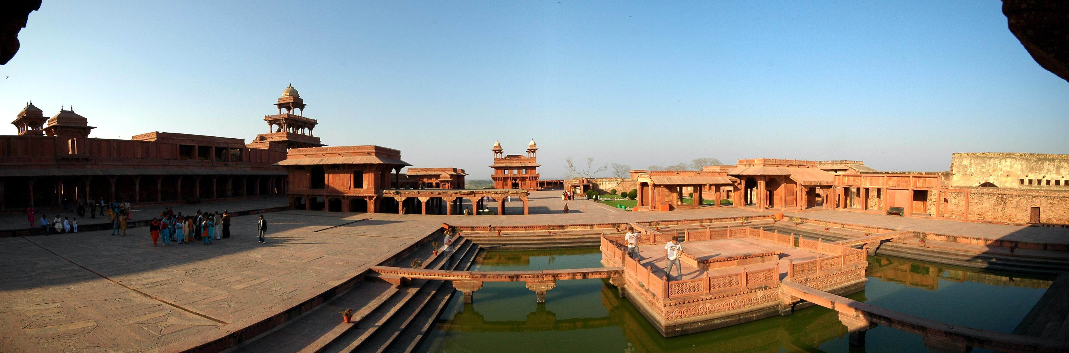 ครึ่งวันเที่ยวไป 2 ที่ใหญ่ๆ โอ้ว…พระเจ้า ทัวร์ทำได้ครับ…..กลับไปทานอาหารกลางวันที่โรงแรม เป็นบุฟเฟต์อาหารแขกเหมือนเดิม แต่มีข้าวมีแกงให้กินด้วย ตามด้วยผลไม้กับไอศครีม อิ่มหมีพีมันเตรียมเดินทางไกลกันต่อ คืนนี้เราจะไปนอนที่ นครชัยปุระ (Jaipur) ห่างจากอัคราอีกเกือบ 300 กม. ต้องนั่งอีกร่วม 5 ชม. ระหว่างทาง ห่างจากเมืองอัคราประมาณ 40 กม. จะผ่าน วังฟาติเปอร์สิกรี (Fatepur Sikri) แวะเข้าเที่ยวก่อน วังนี้เป็นวังที่พระเจ้าอัคบามาสร้างขึ้น หวังให้เป็นเมืองหลวง แต่ว่ามันแห้งแล้งจึงไม่เหมาะสมในการอยู่ ผลสุดท้ายจึงย้ายไปที่เมืองอัคราริมแม่น้ำยมุนาแทน สงสัยจริงว่า จะสร้างเมืองสร้างวังกันทั้งทีทำไมไม่คิดให้รอบคอบนะ สร้างกันเสียเงินเสียทองเสียแรงงาน ใหญ่โตมโหฬาร แล้วก็ไม่ได้ใช้ทิ้งไปซะงั้น