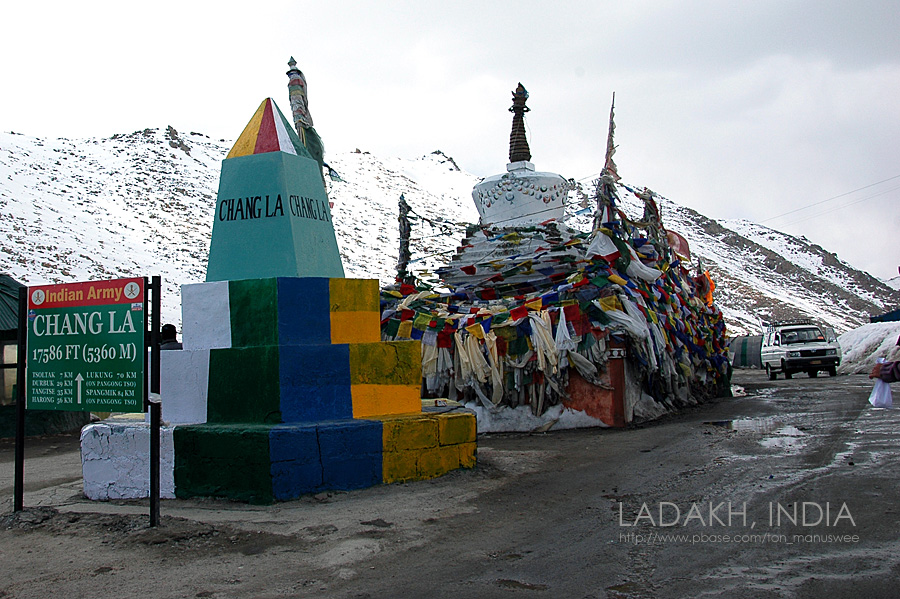 วันนี้เดินทางไกล ข้ามเขาหลายลูกเพื่อไปชม ทะเลสาบแปงกอง (Pangong Lake) รายการวันนี้มีเรื่องพิเศษนิดหน่อยที่ควรเล่าให้เป็นกรณีตัวอย่าง คือ คนที่ถือพาสปอร์ตข้าราชการสามารถเข้าอินเดียโดยไม่ต้องขอวีซ่าได้ แต่การเดินทางไปที่บริเวณทะเลสาปแปงกองนี้ ต้องทำเรื่องขอนุญาตทางการเพิ่มต่างหาก โดยเขาจะตรวจดู tourist visa ถ้าไม่มีไม่สามารถเข้าพื้นที่นั้นได้ สอบถามได้ความว่าเป็นเรื่องเกี่ยวกับความมั่นคง เพราะบริเวณนั้นใกล้ชายแดนปากีสถาน – จีน – และเนปาล การตรวจตราเข้มงวดมาก นักท่องเที่ยวซึ่งมี tourist visa เท่านั้นที่ผ่านเข้าได้ ถ้าข้าราชการที่ไม่มีวีซ่าต้องทำเรื่องขออนุญาตเข้าพท.เป็นการล่วงหน้า ซึ่งใช้เวลานาน ขอวีซ่าท่องเที่ยวมาง่ายกว่า เหตุการณ์นี้มาเกิดกับพี่ผู้หญิงคนหนึ่งในกรุ๊ป พยายามต่อรองกับทางการอินเดียกันจนหมดปัญญา คุณหนึ่งจึงแก้ไขโดยการจัดรถแยก 1 คันพร้อมไกด์ให้พี่เขาไปทะเลสาปอื่นที่คล้ายคลึงกัน สรุปว่าให้พี่เขาไปทะเลสาปชื่อ Tsokar ต้องนั่งรถข้ามเขาผ่านจุดสูงๆคล้ายกับเส้นทางที่เราจะไปทะเลสาปแปงกองแหละ เพราะทางที่เราจะไปวันนี้จะผ่านจุดที่สูงเป็นอันดับ 3 ของโลกเลยด้วยคือ Changla pass ซึ่งสูง 5,360 ม.จากระดับน้ำทะเล
